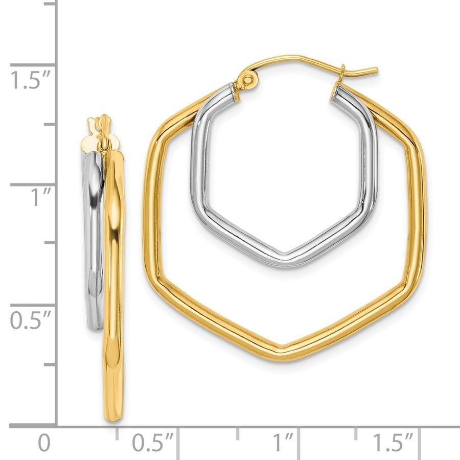 14k Two-tone Polished Hoop Earrings - 35 mm