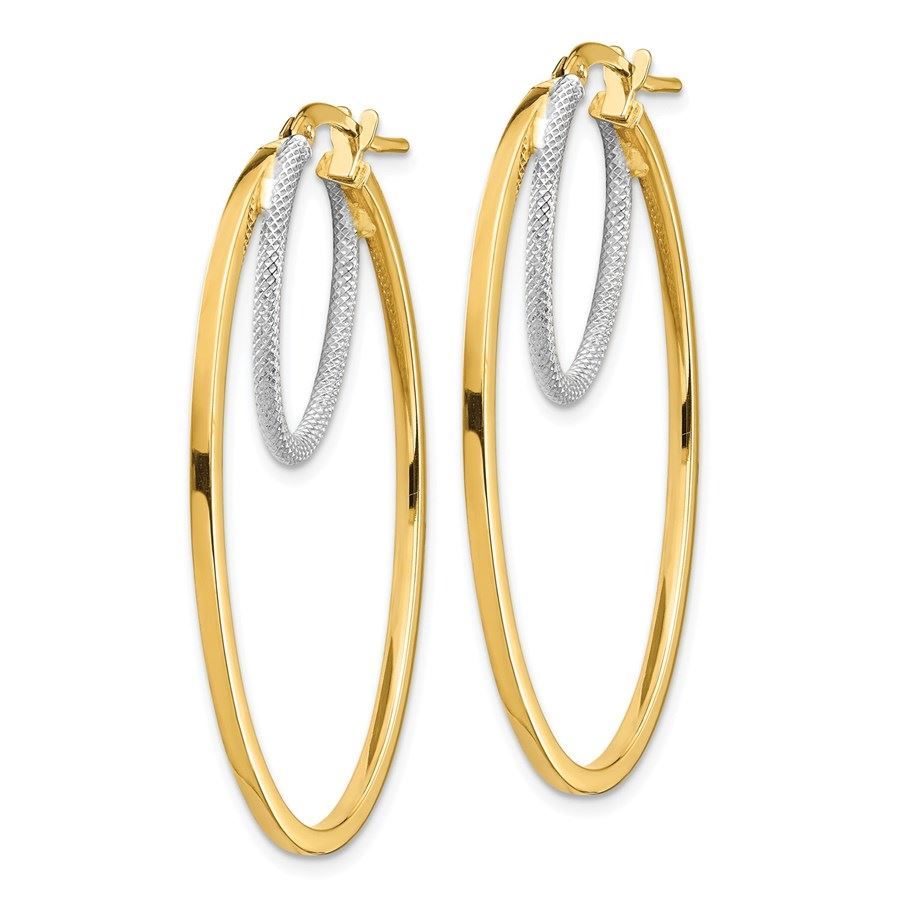 14k Two-tone Polished & Textured Oval Hoop Earrings