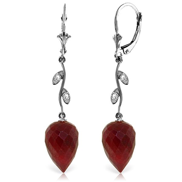 Expertly crafted, this 14k Solid Gold Leverback Earrings feature 26.10 carat multi-faceted Pointy Briolette Drop Rubies and Natural Diamonds.