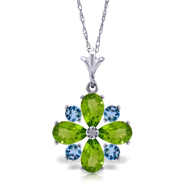 14K. SOLID GOLD NECKLACE WITH PERIDOTS & BLUE TOPAZ