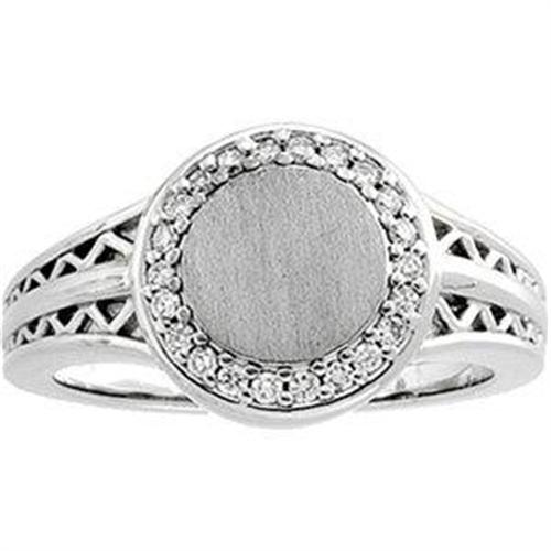 14k White Gold Diamond Signet Ring featuring 22 round Diamonds =1/6 Carat Total Weight.