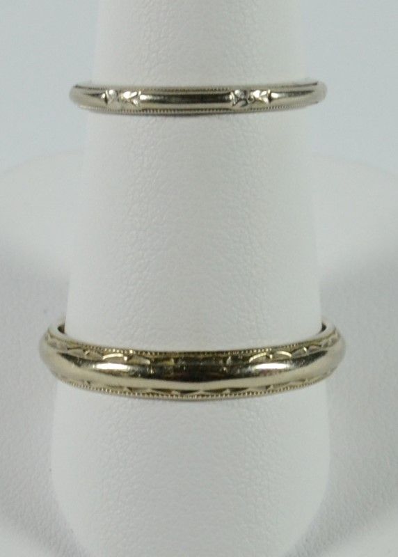 14k WHITE GOLD WEDDING BAND VINTAGE SET LADIES SIZE 7, MANS SIZE 12