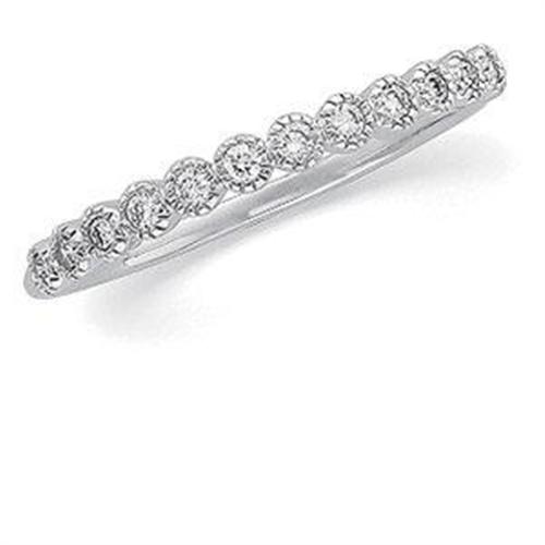 14k White Gold Wedding Band, also called an Anniversary Band, with 12 Diamonds set across the top. The Diamond Total Weight= .16 Carats! The Diamonds are all well matched, in the 'SI' Quality Category and the 'I' Color Category. This beautiful Wedding Band is a Size 7 and it can be resized.