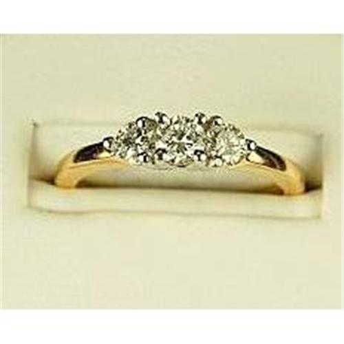 This “Past, Present, Future” Diamond Ring is worn both as an Engagement ring AND as a Wedding Band. 14K Yellow Gold  Engagement ring set with 3 Round Brilliant Cut Diamonds = .50 CARATS!  These Diamonds are Fine 'H/I' Color and Fine 'VS2' Clarity. This ring is a size 6 and I can easily resize it for you. If you bought this Diamond ring in a Retail Store you would pay at least $1500 for it, plus the sales tax!!  It is now a size 6 and I CAN resize it for you. It IS in Brand New Condition.