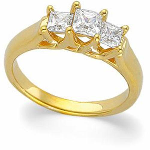 This Magnificent Diamond Wedding Band features 3 SPARKLING PRINCESS CUT DIAMONDS! The Wedding Band is 14k Yellow Gold and the 3 Princess Cut Diamonds are all well matched, 'SI' Clarity and FINE 'H' Color. The DIAMOND TOTAL WEIGHT = .90 CARATS! This ring is a Size 7 and I can easily resize it for you either larger or smaller.