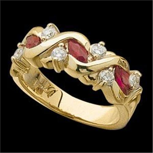 14k Yellow Gold Diamond and Ruby Anniversary Band featuring 3 Marquise Cut Genuine Rubys and 6 round DIAMONDS! The Diamond Total Weight= .40 CARATS! This Wedding Band is a size 6 and I can resize it for you.It is in Mint conidtion and it IS 'VERY' beautiful.