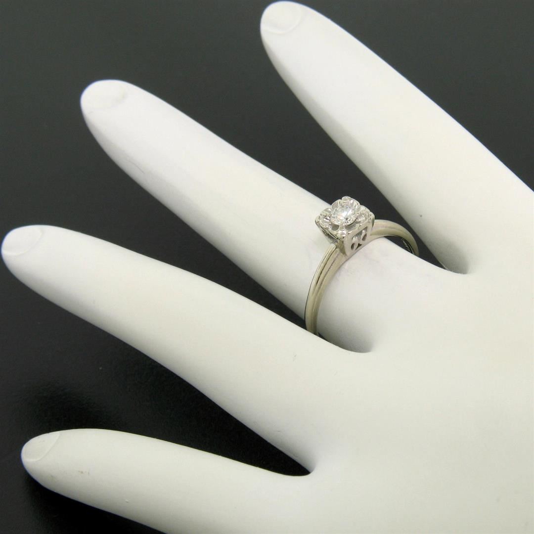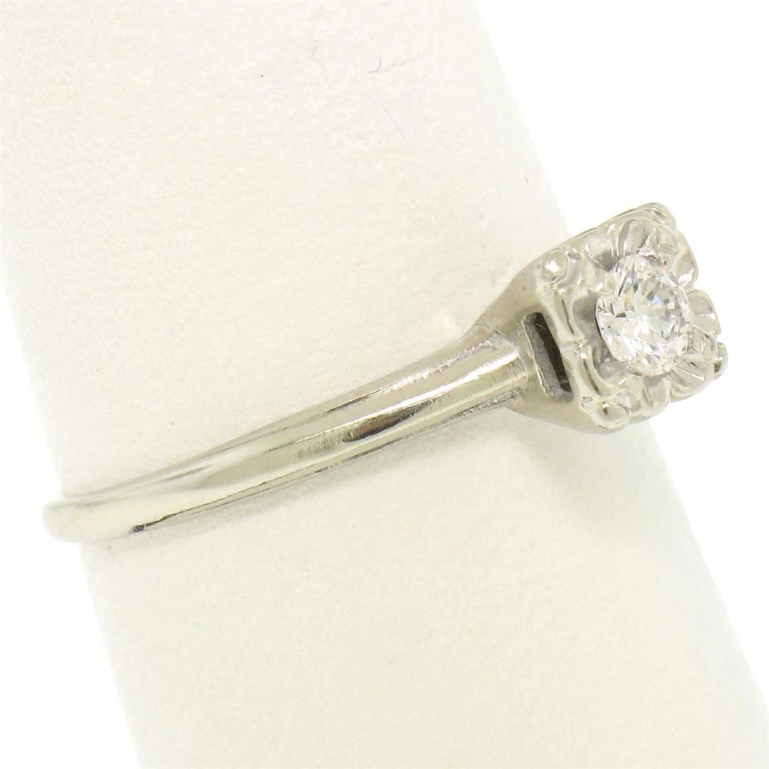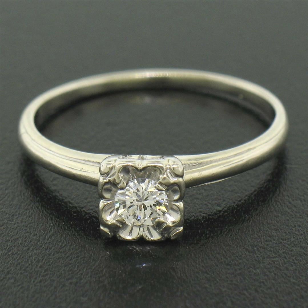 One Vintage 14k White Gold 0.20ct F VVS2 Illusion Set Round Diamond Solitaire Ring. Item Details: Material: 14k Solid White Gold, Weight: 1.8 Grams, Stone(s): (1) Natural Genuine Diamond - Round Brilliant Cut - Illusion Prong Set - F Color - VVS2 Clarity, Total Carat Weight: 0.20 (approx.), Ring Size: 6.5 (We can custom size this ring.), Ring Width: 5.78mm, Ring Height: 6.13mm rise off the finger, Condition: Vintage piece. Excellent, ready to wear condition!