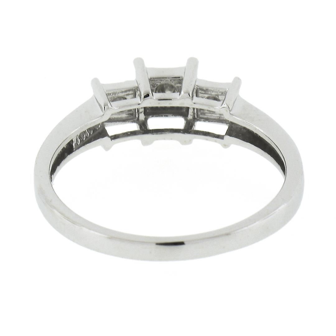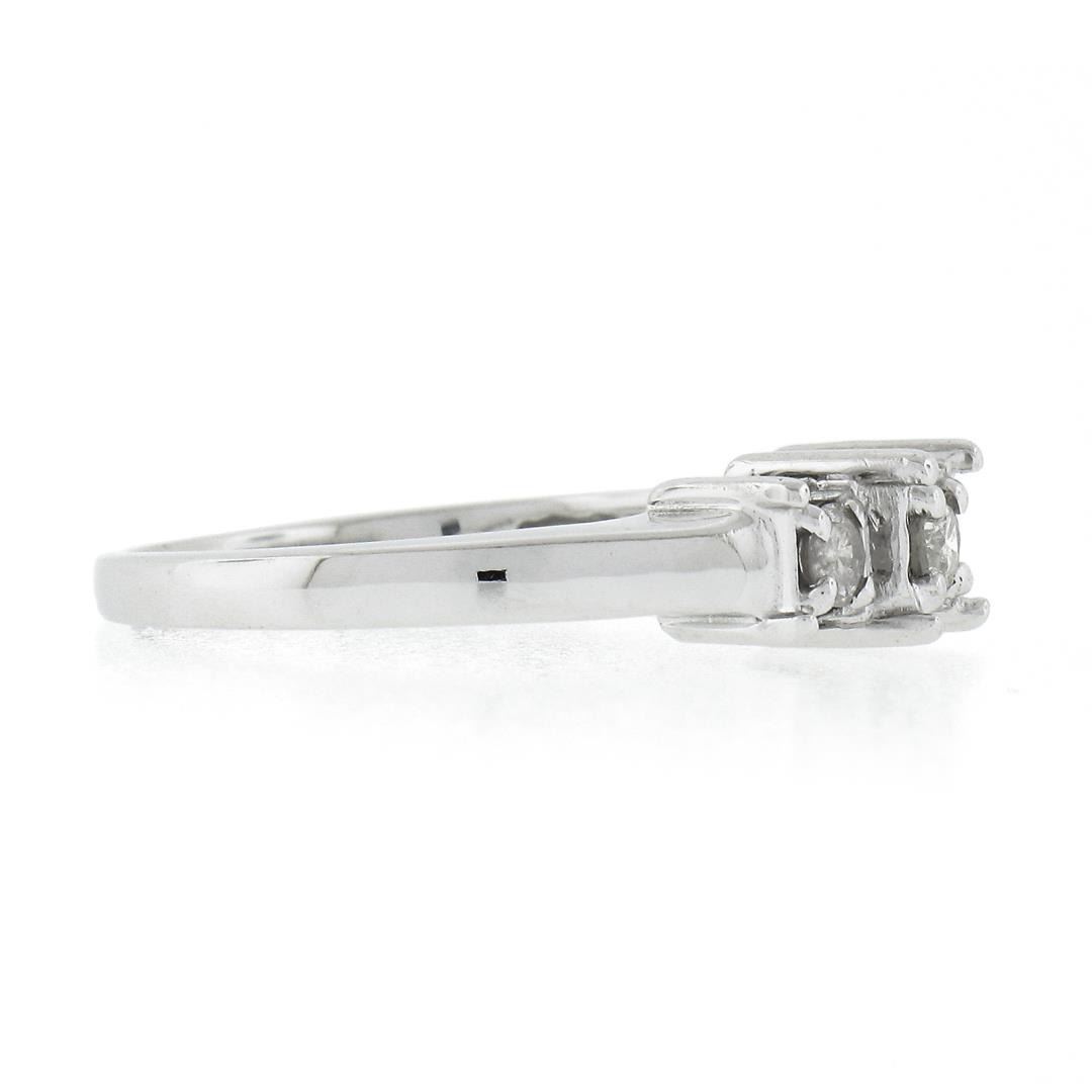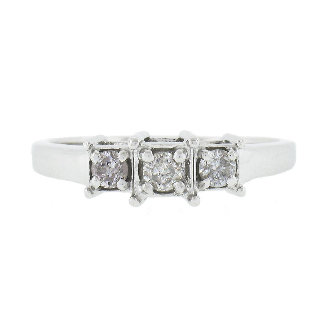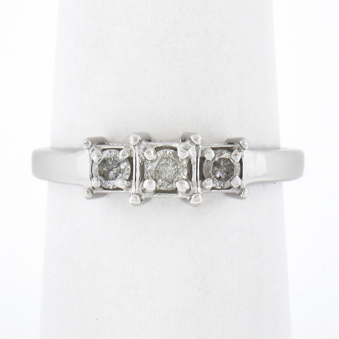 A solid 14k white gold 3 stones ring, with 3 round cut natural diamonds (J - I3 ; 0.22ctw). The ring is size 7.0, weighs a total of 2.67 grams, and measures 5.25mm wide.