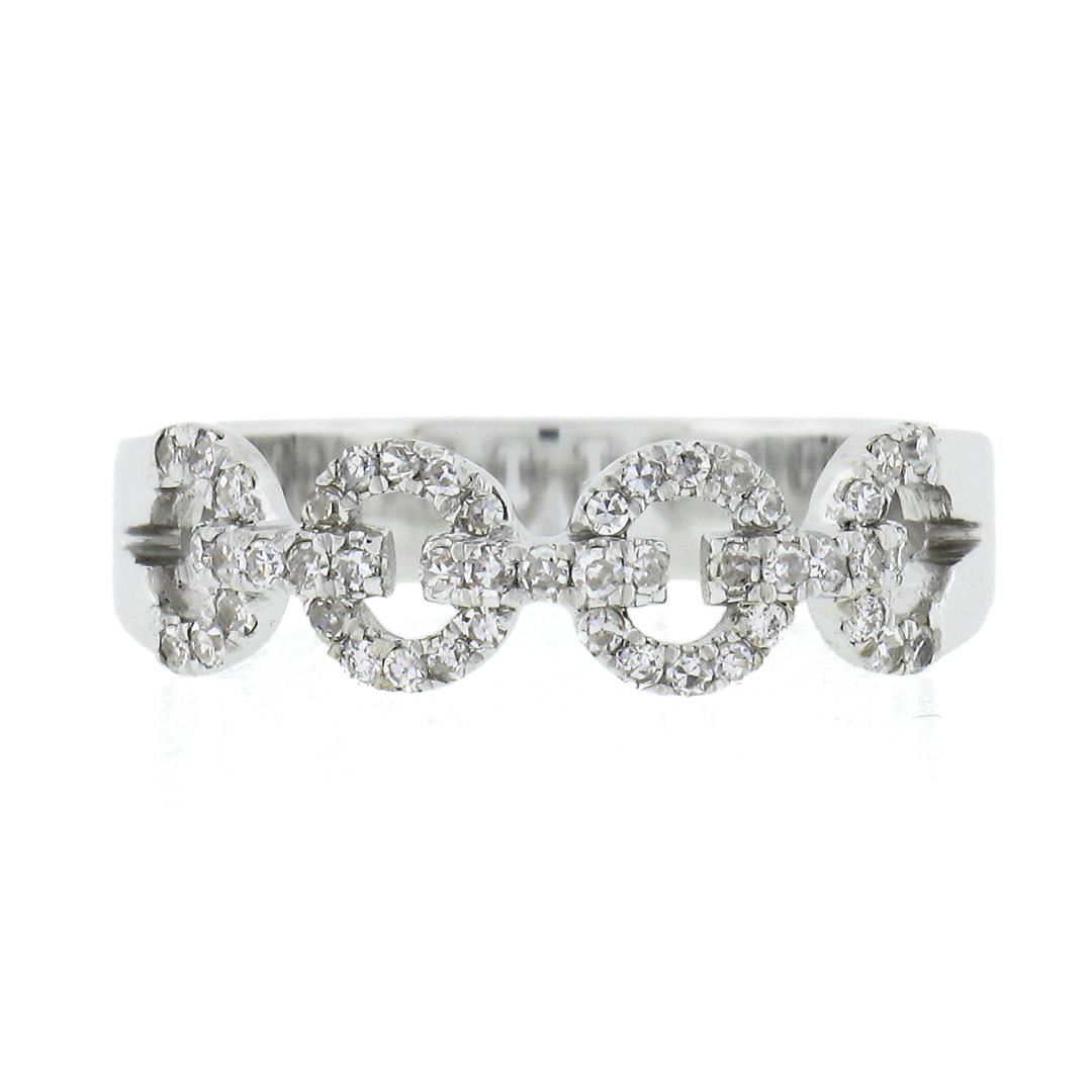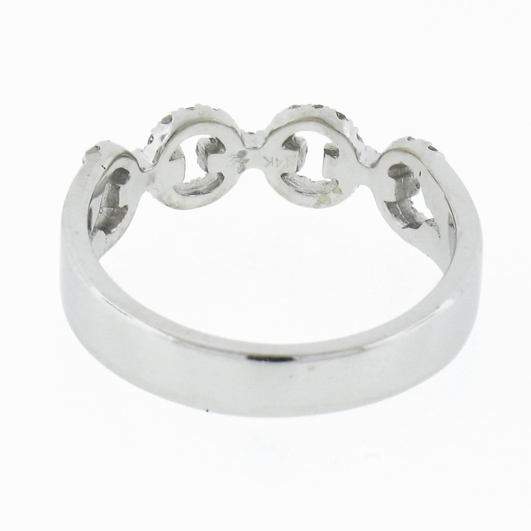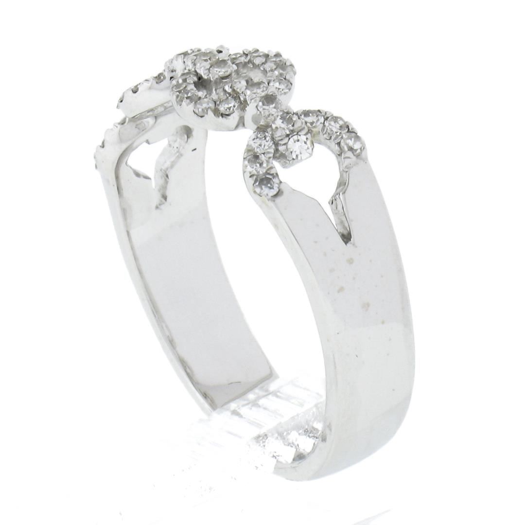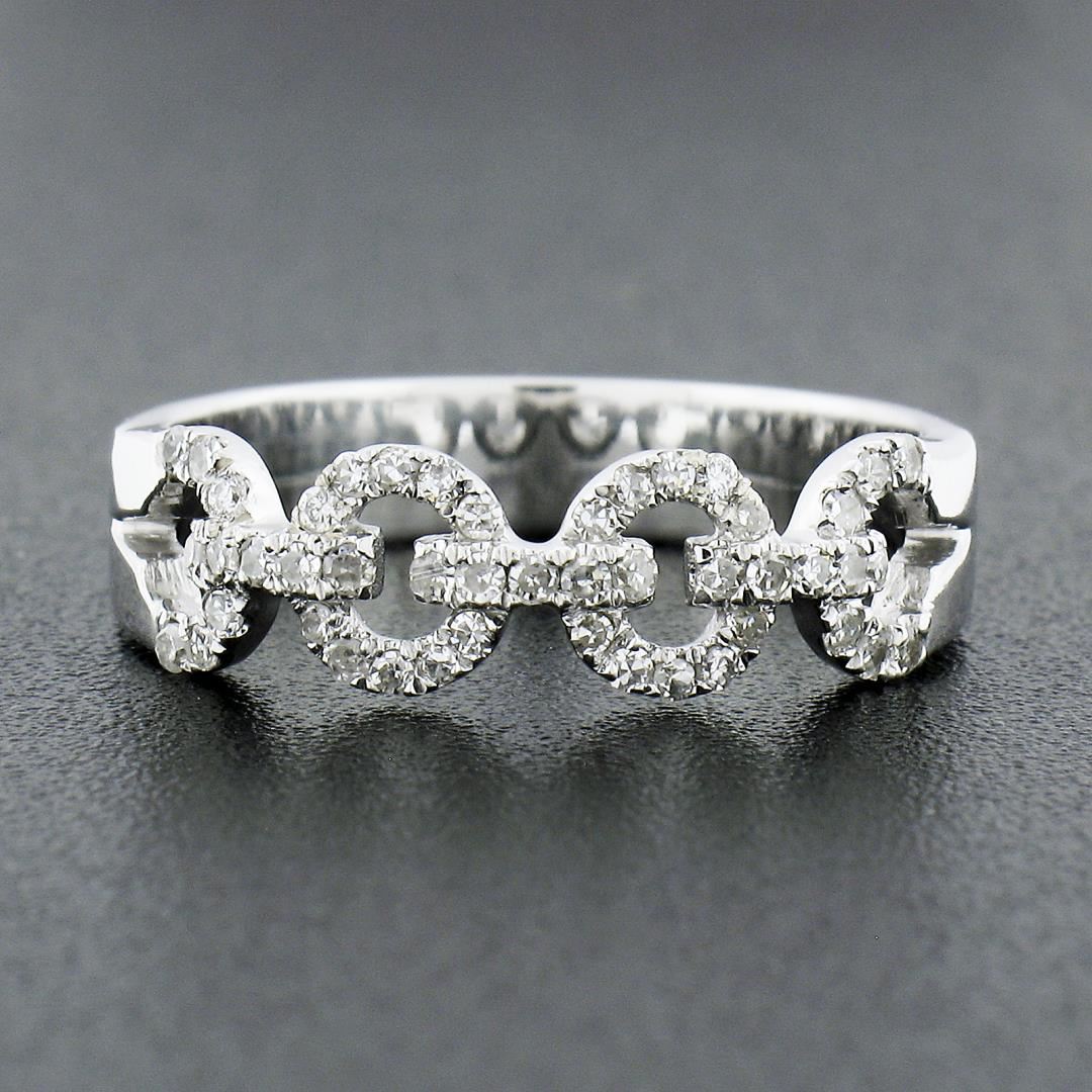 A solid 14k white gold ring, with 47 round cut natural diamonds (H-J - SI1-I1 ; 0.23ctw). The ring is size 6.0, weighs a total of 3.09 grams, and measures 5.4mm wide.
