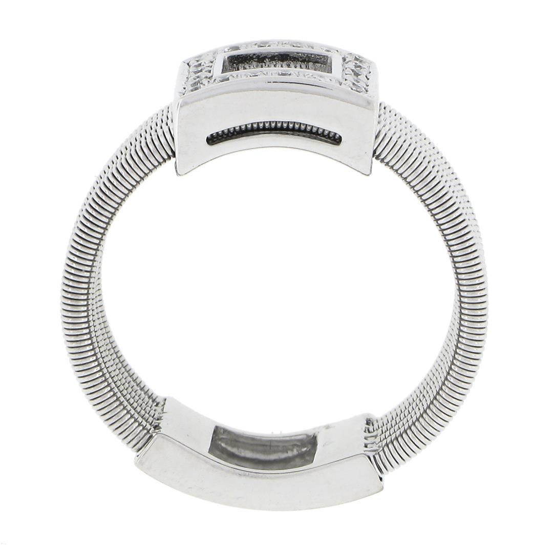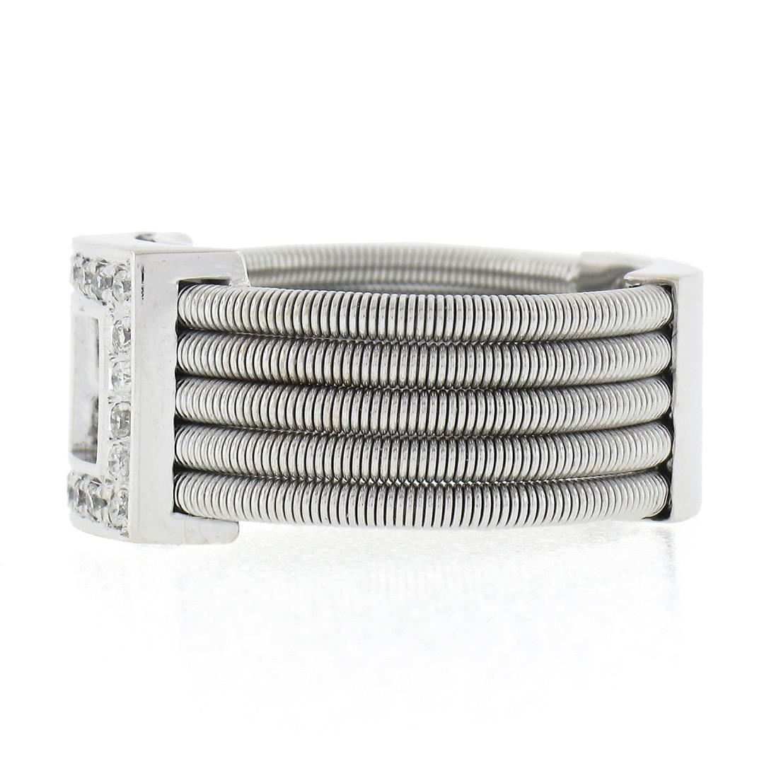 A solid 14k white gold 5 row band ring, with 20 round cut natural diamonds (G/H - I1/I2 ; 0.26ctw). The ring is size 7.5, weighs a total of 10.03 grams, and measures 10.6mm wide.