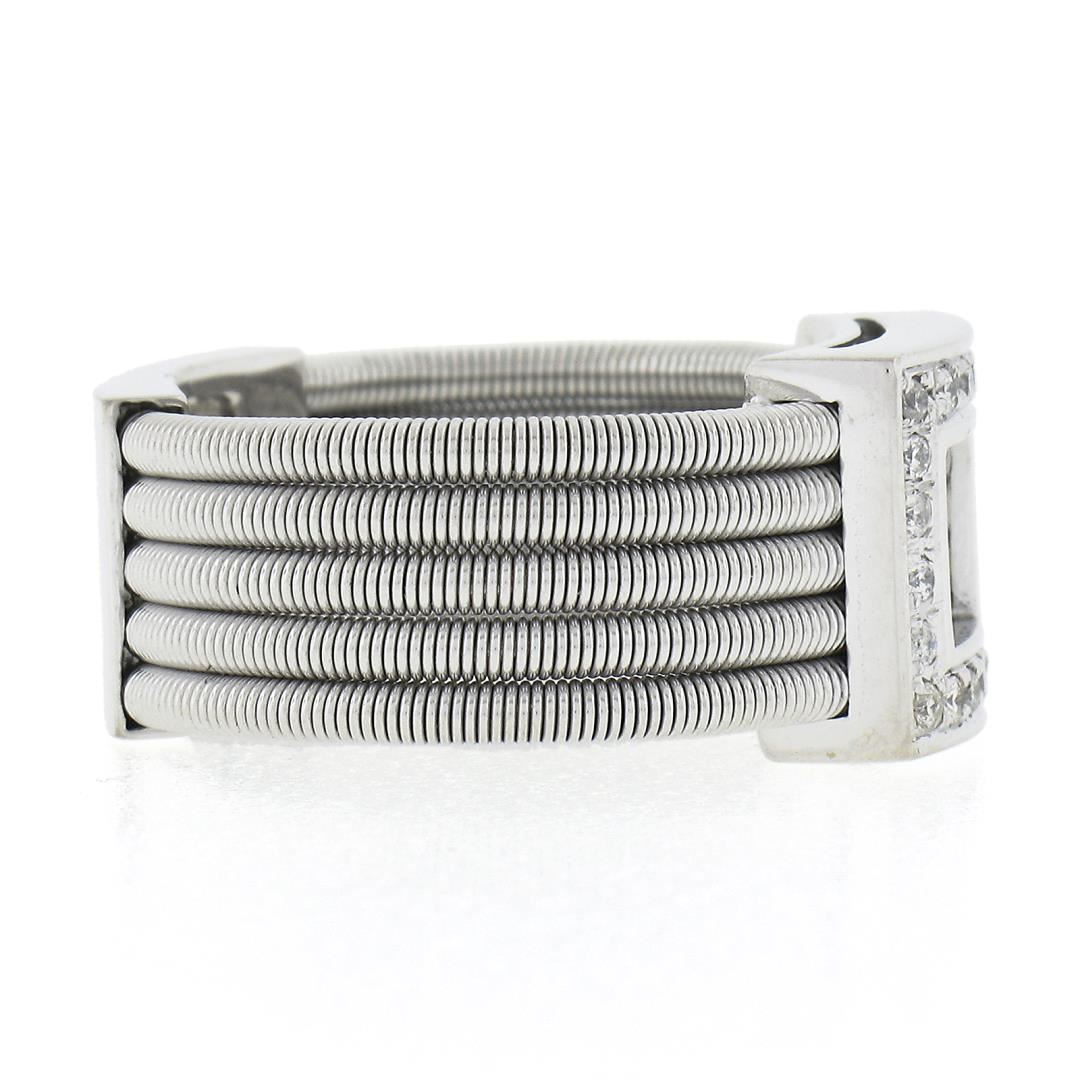 A solid 14k white gold 5 row band ring, with 20 round cut natural diamonds (G/H - I1/I2 ; 0.26ctw). The ring is size 7.5, weighs a total of 10.03 grams, and measures 10.6mm wide.