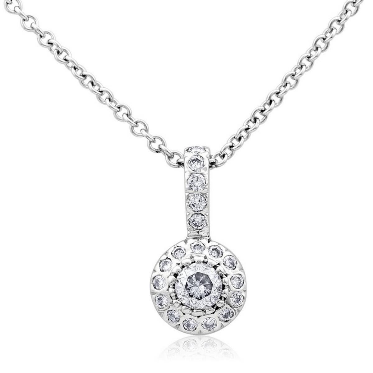 One 14k White Gold 0.50CTW Diamond Pendant, (I1-I2/H-I) - Product Specification: Stone: Diamond Stone 4 Custom: I1-I2 / H-I Stone Clarity: I1-I2 Stone Color: H-I Stone Color to: I Stone type: Round Stone Weight: 0.5 Weight: 1 Width: 8.0mm
