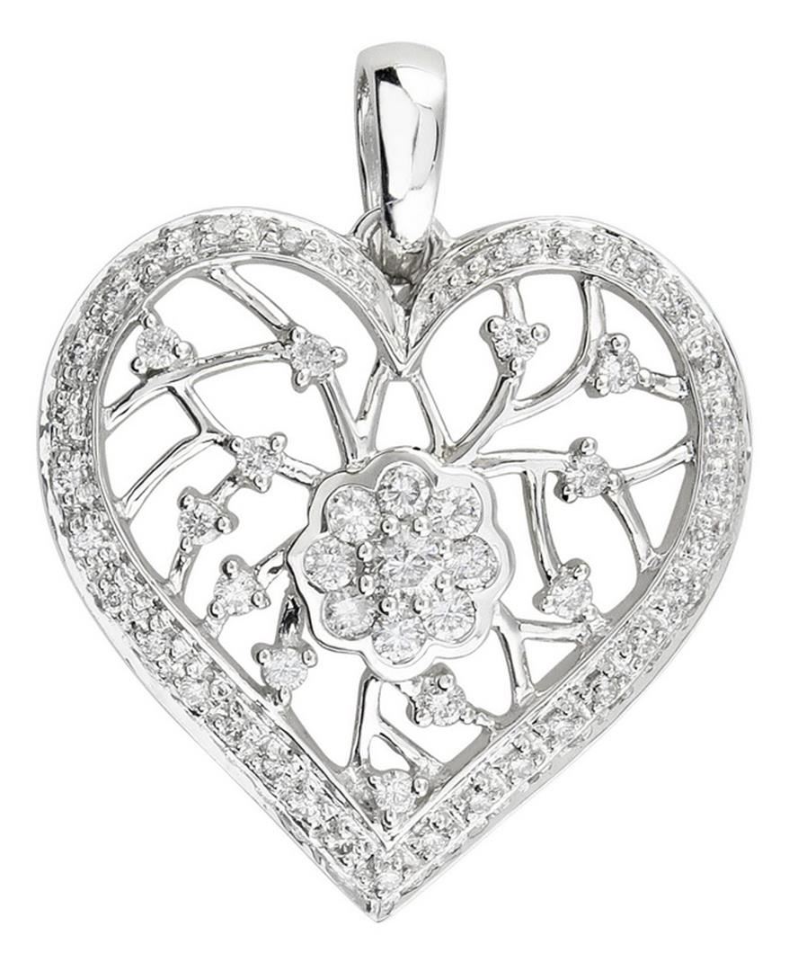 One 14k White Gold 0.52CTW Diamond Pendant, (I1-I2/H-I) - Product Specification:  Stone: Diamond Stone 3 Custom: Women Stone 4 Custom: I1-I2 / H-I Stone Clarity: I1-I2 Stone Color: H-I Stone Color to: I Stone Count: 52 Stone type: Round Stone Weight: 0.52 Weight: 1 Width: 25.0mm