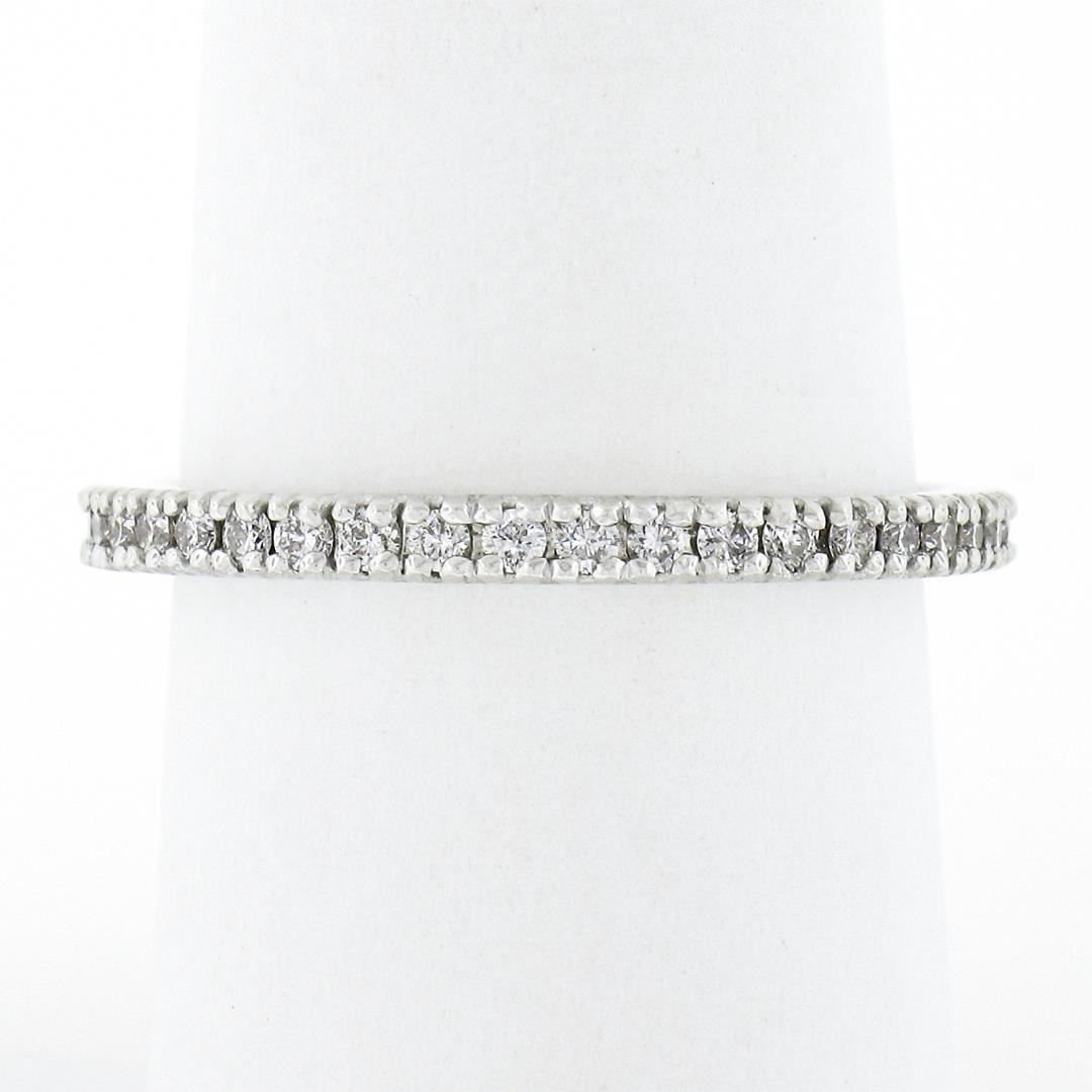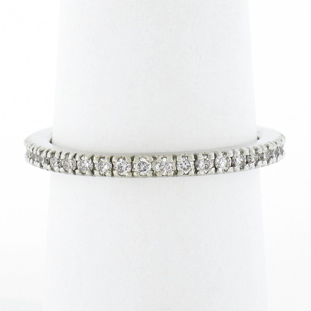 A solid 14k white gold eternity band ring, with 40 round cut natural diamonds (G/H - VS2/SI1 ; 0.55ctw). The ring is size 7.5, weighs a total of 2.70 grams, and measures 2mm wide.