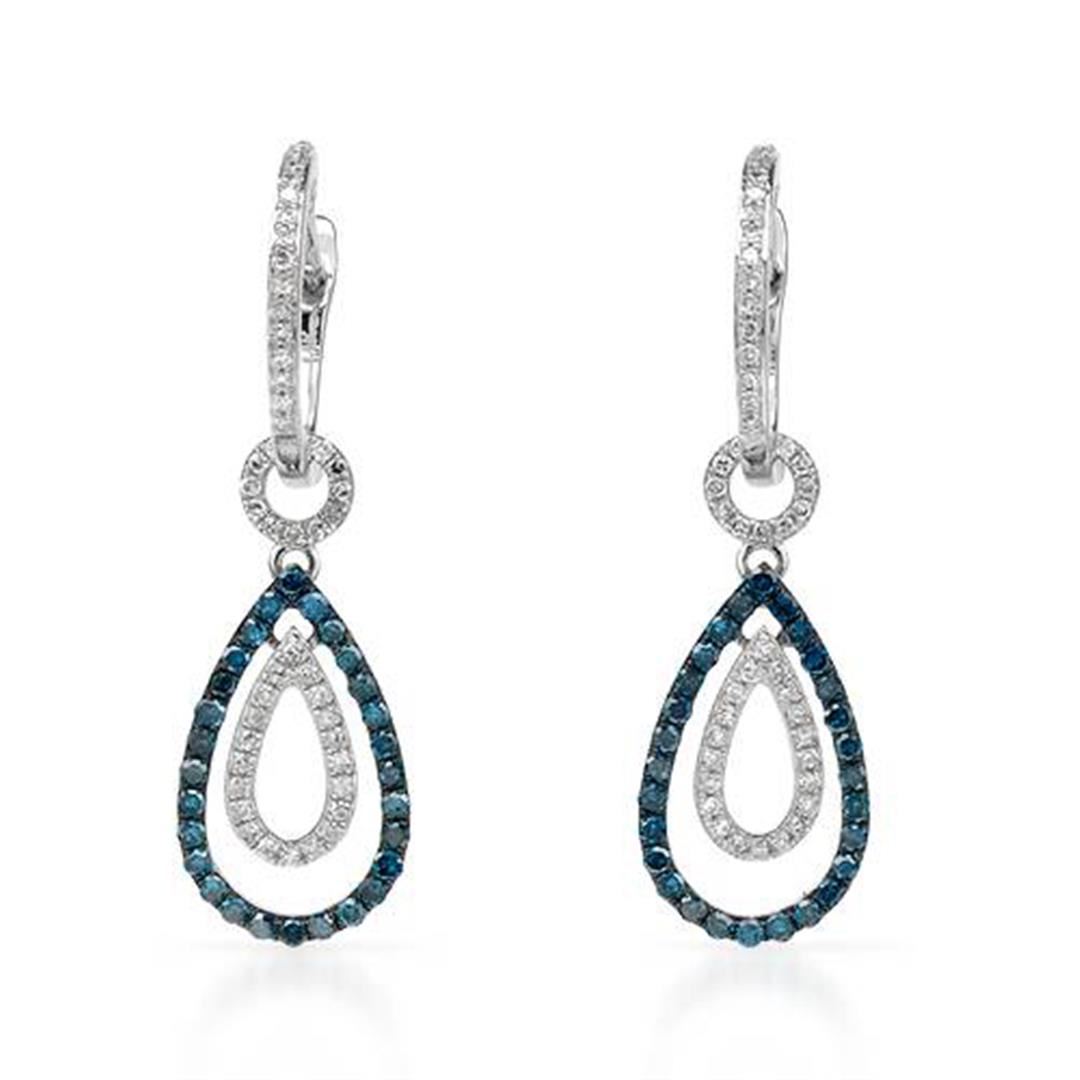 One 14k White Gold 0.61CTW Diamond and Blue Diamonds Earring, (SI1-SI2/Gold) - Product Specification: Stone: Diamond Stone 2: Blue Diamonds Stone 2 Clarity: SI1-SI2 Stone 2 Custom: G Stone 2 Weight: 0.24 Stone 3: Diamond Stone 3 Clarity: 1 Stone 3 Color: No Stone 3 Color min: SI1 Stone 3 Custom: Women Stone Color: Gold Stone Shape: G Stone type: 14 Weight: 1 Width: 29.0mm