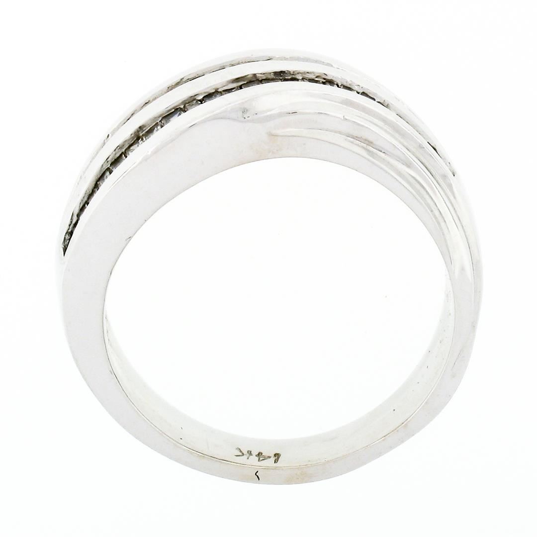 14k White Gold 0.75 ctw Dual Row Channel Set Baguette Diamond Wavy Wave Band Rin