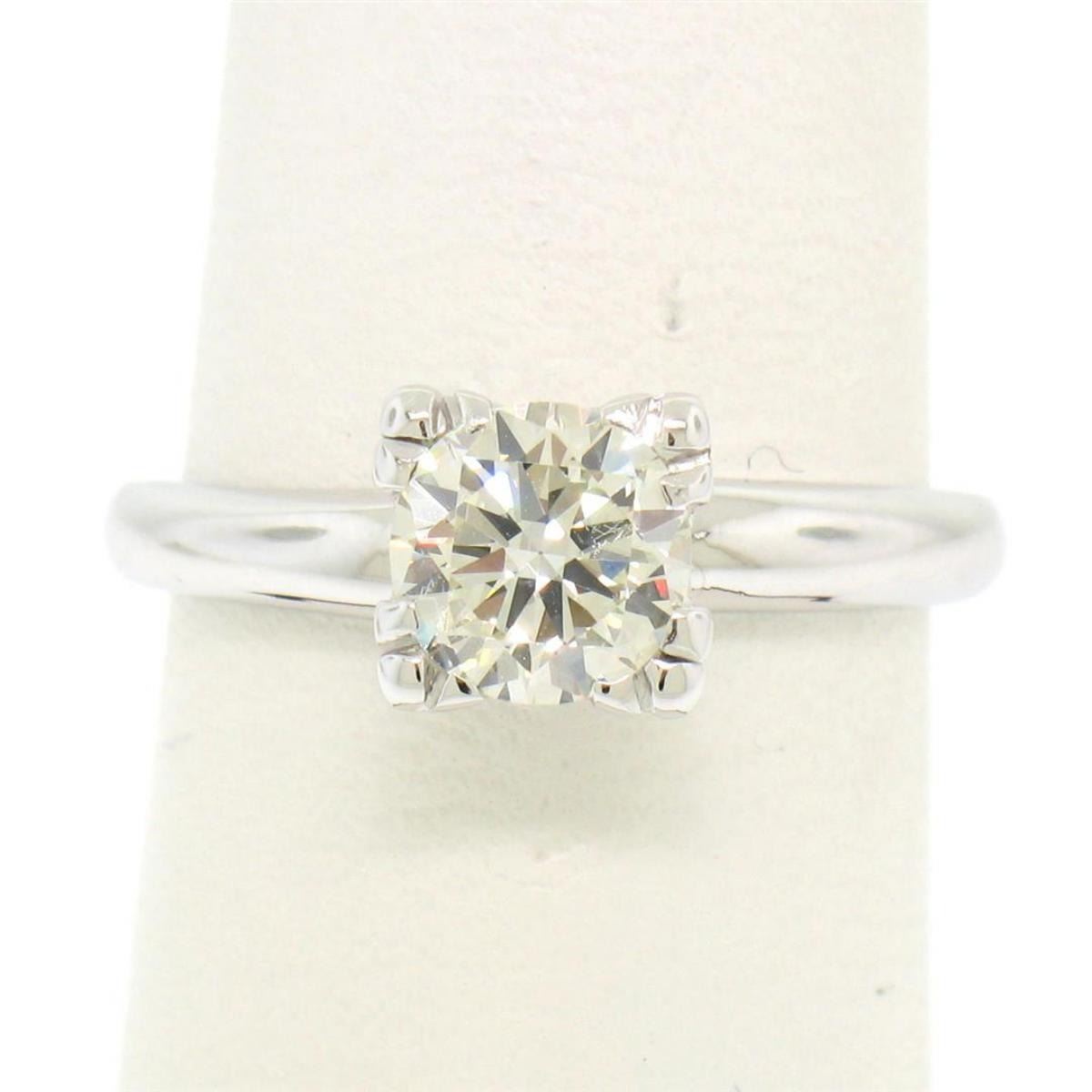 One Vintage 14k White Gold 0.83ct I VVS2 Round Brilliant Cut Diamond Solitaire Ring. Item Details: Material: 14k Solid White Gold, Weight: 2.9 Grams, Stone(s): (1) Natural Genuine Diamond - Round Brilliant Cut - Prong Set - I Color - VVS2 Clarity, Total Carat Weight: 0.83 (approx.), Ring Size: 5.75 (We can custom size this ring.), Ring Width: 6.56mm, Ring Height: 6.74mm rise off the finger, Condition: Vintage piece. Excellent, ready to wear condition!