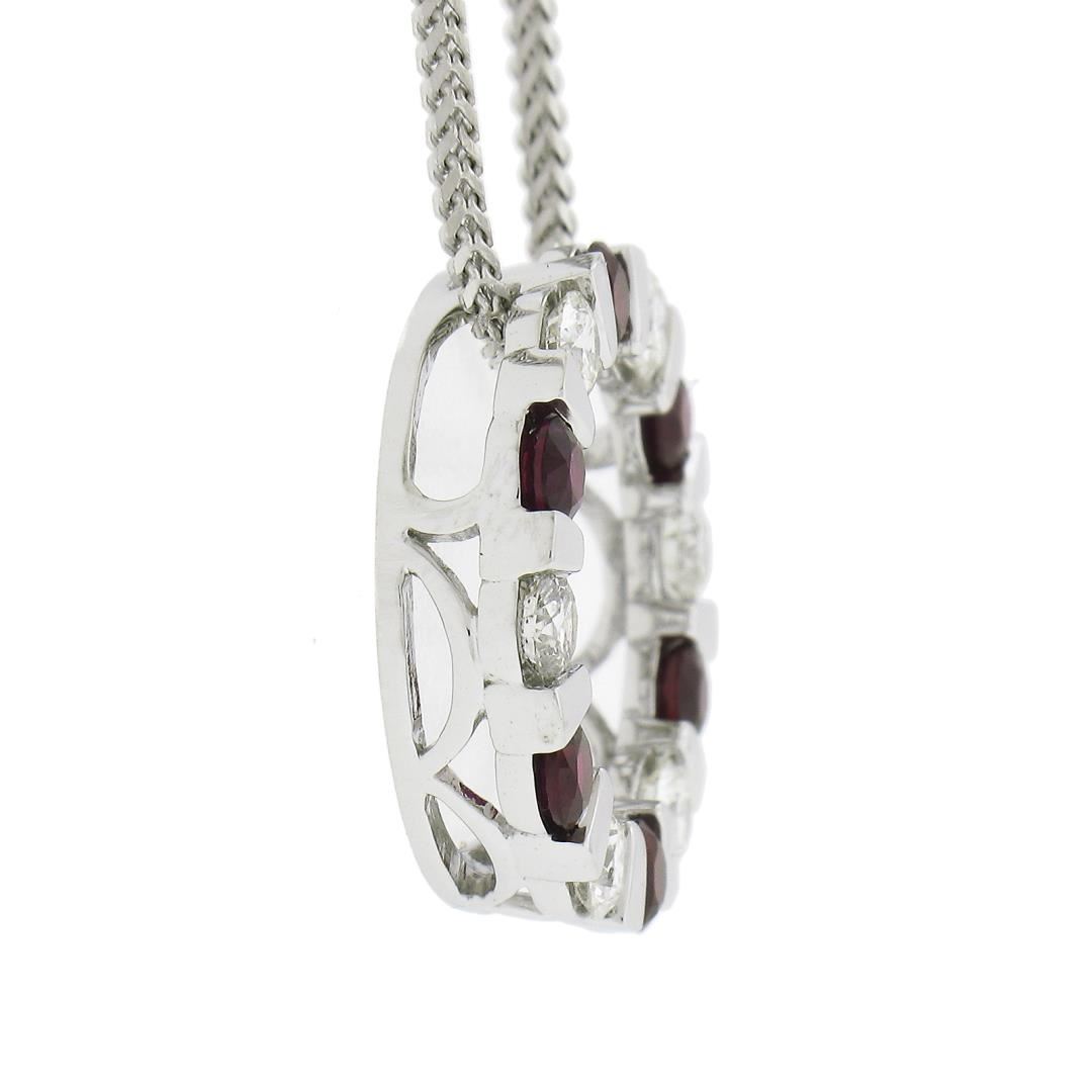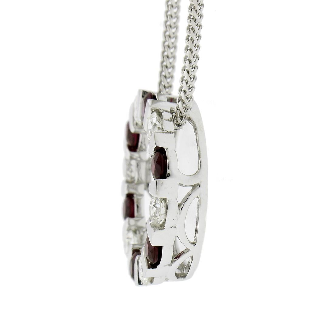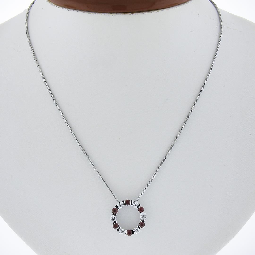 14k White Gold 1.01ctw Alternating Channel Ruby & Diamond Circle Pendant Chain