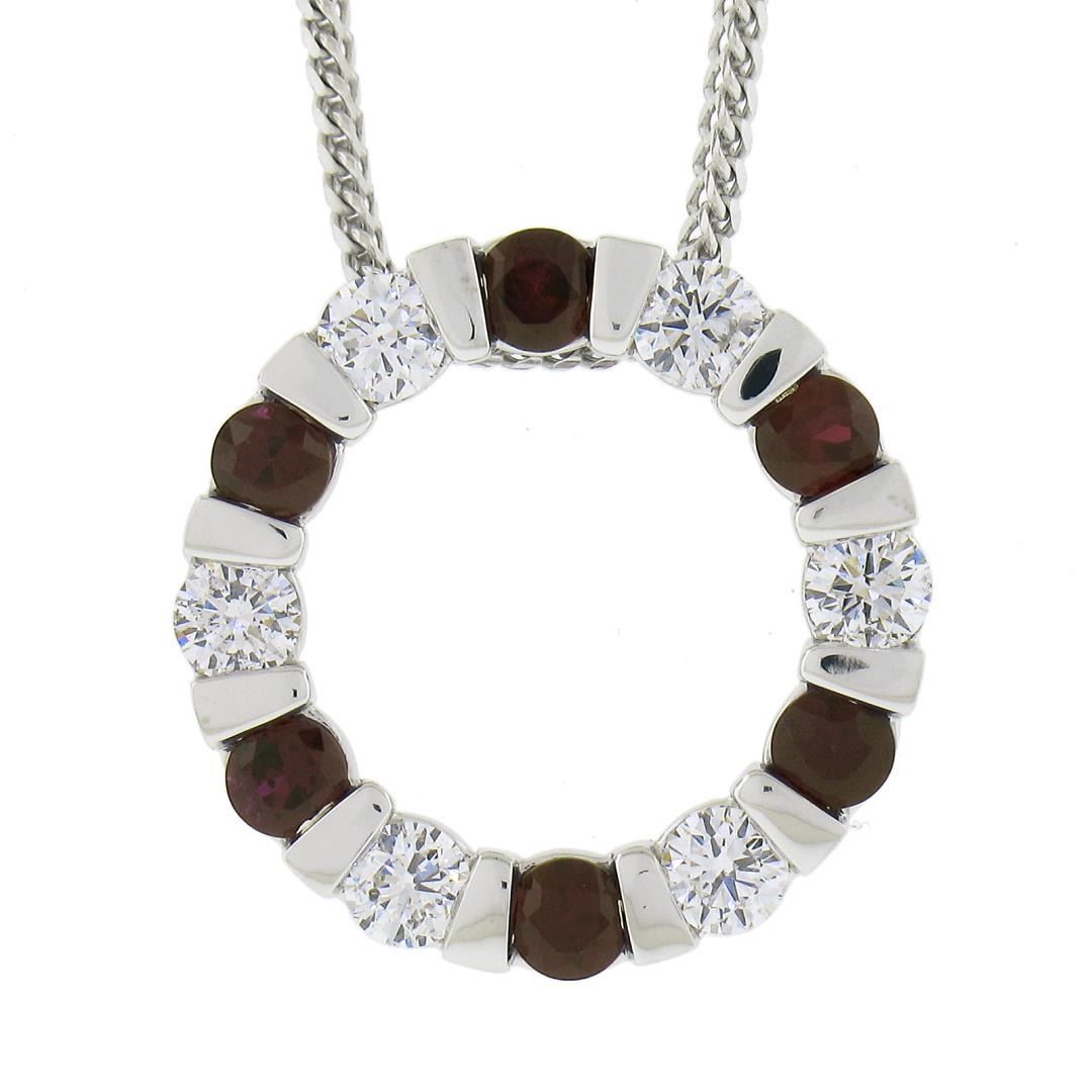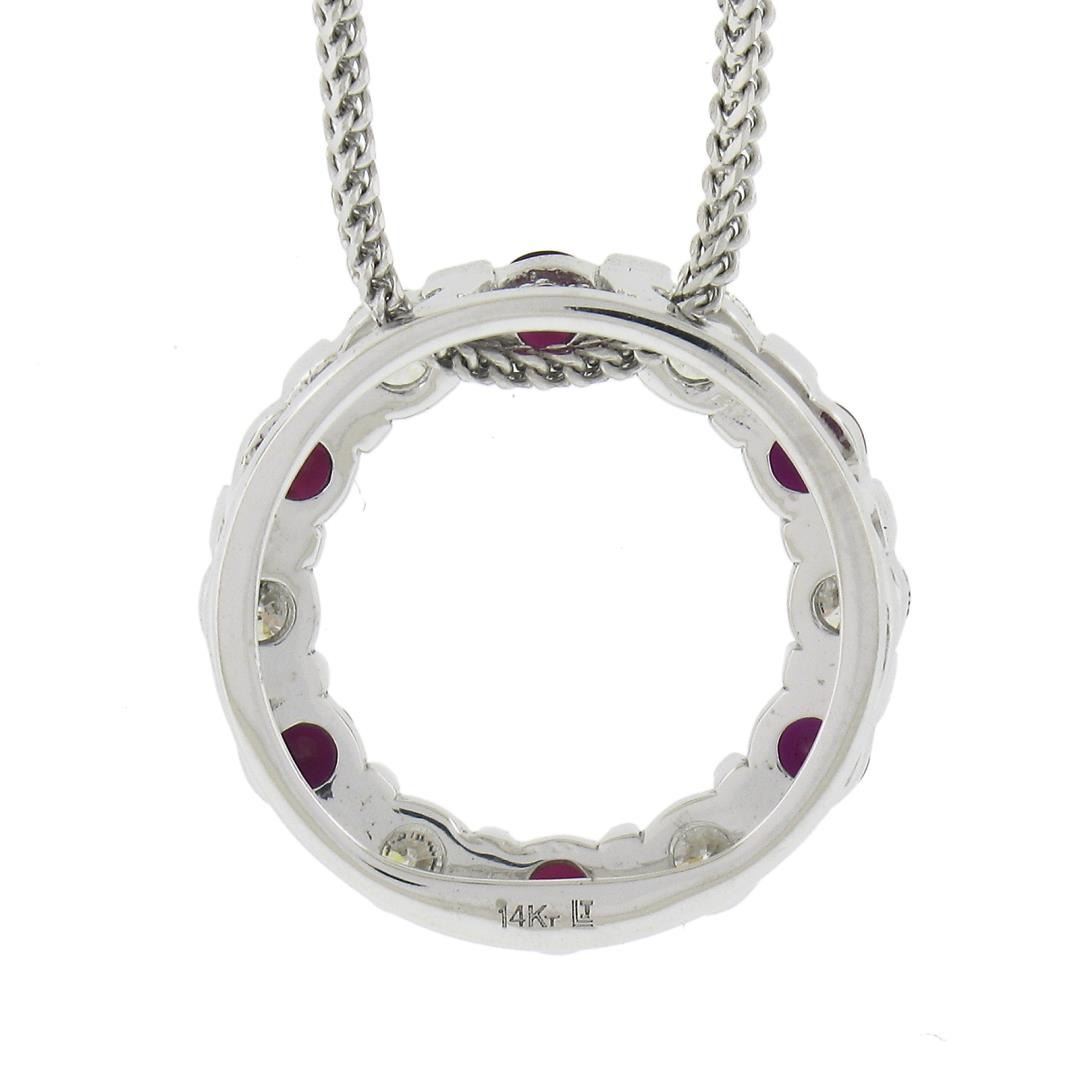 14k White Gold 1.01ctw Alternating Channel Ruby & Diamond Circle Pendant Chain