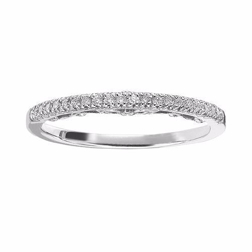 Beautiful round-cut diamonds line the front of the band, making this 14k white gold ring one she'll treasure.