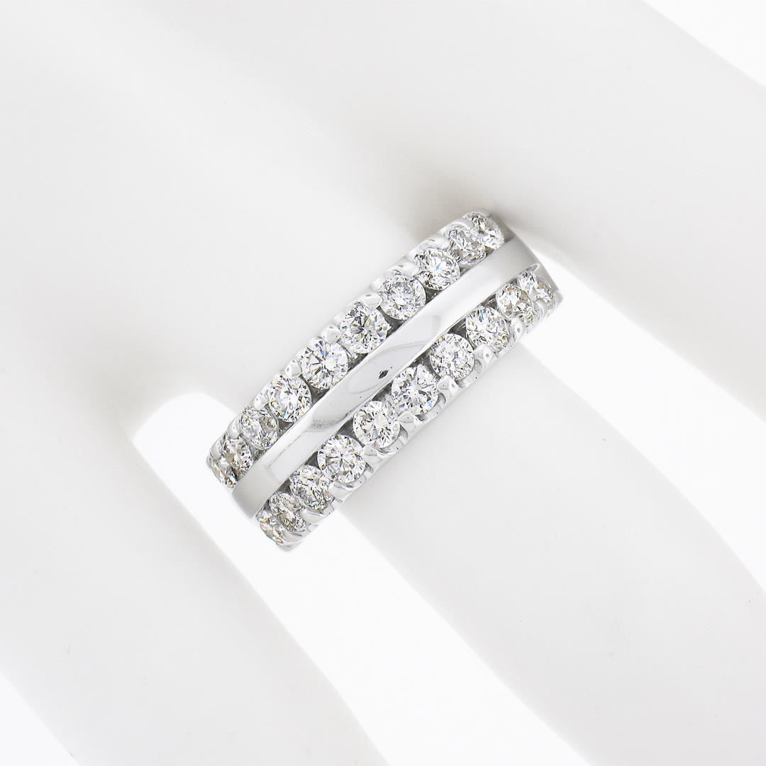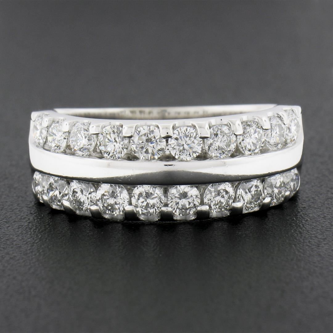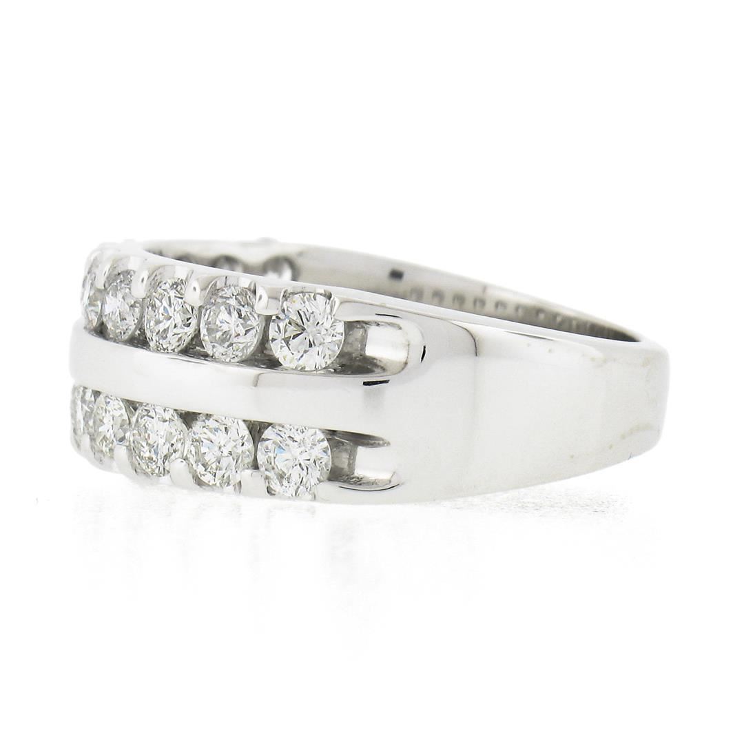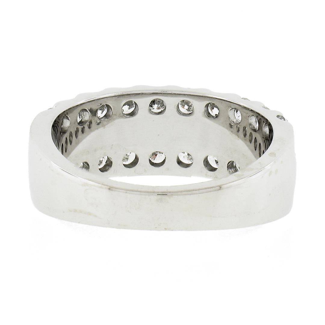 A solid 14k white gold band ring, with 20 round cur natural diamonds (G/H - SI1/SI2 w/ a few I1 ; 1.20ctw). The ring is size 7.0, weighs a total of 6.78 grams, and measures 7.7mm wide.