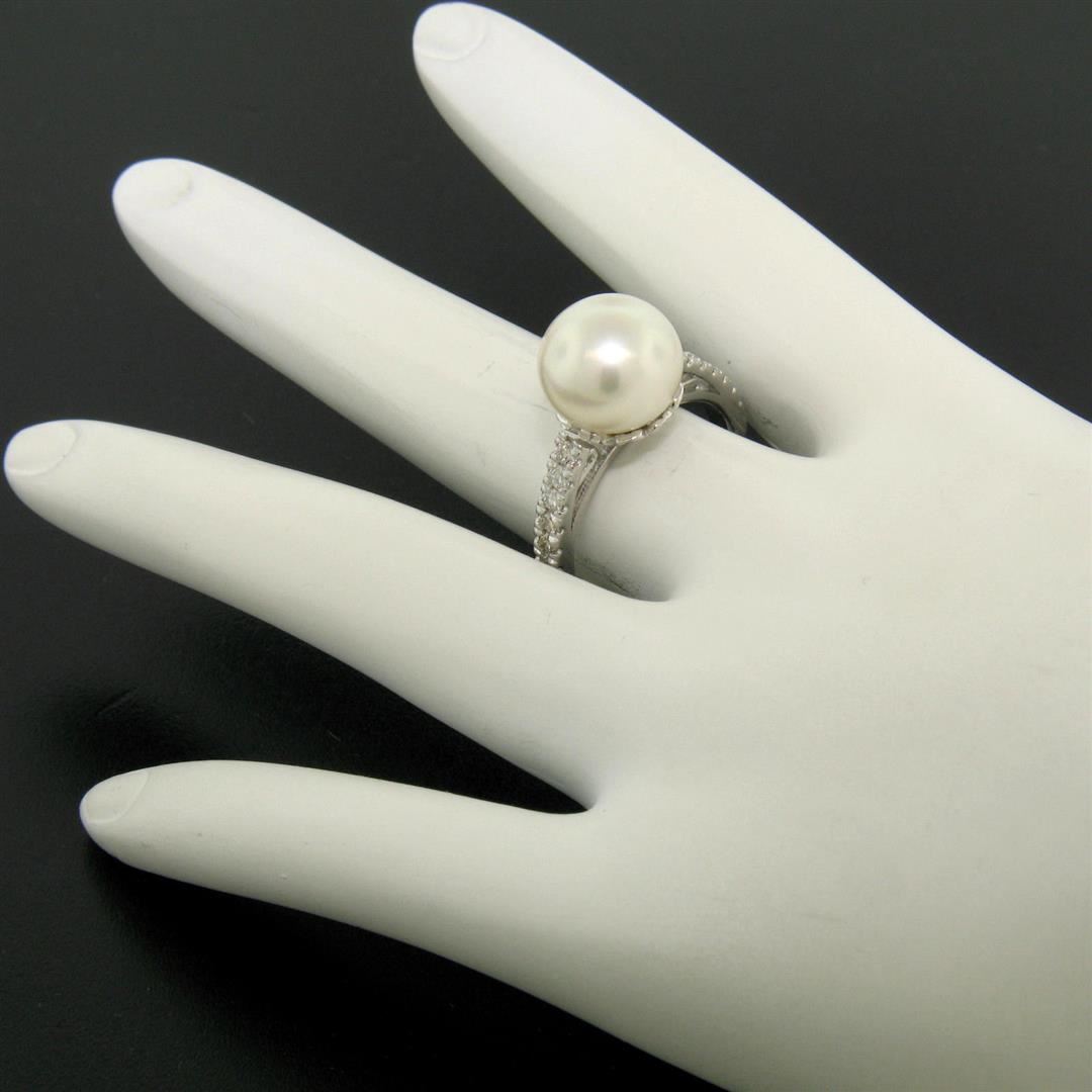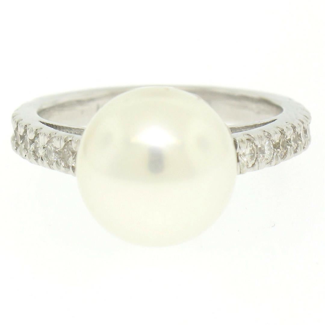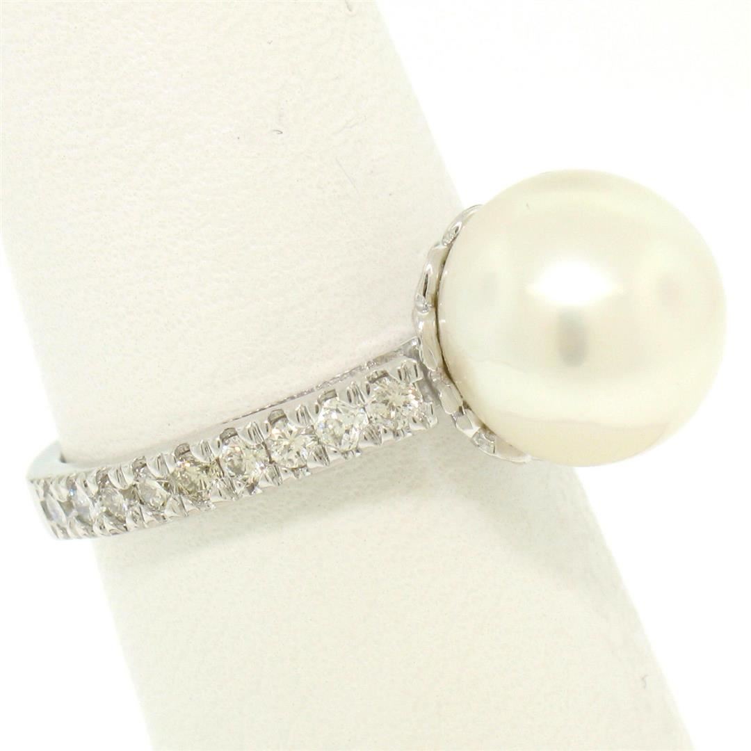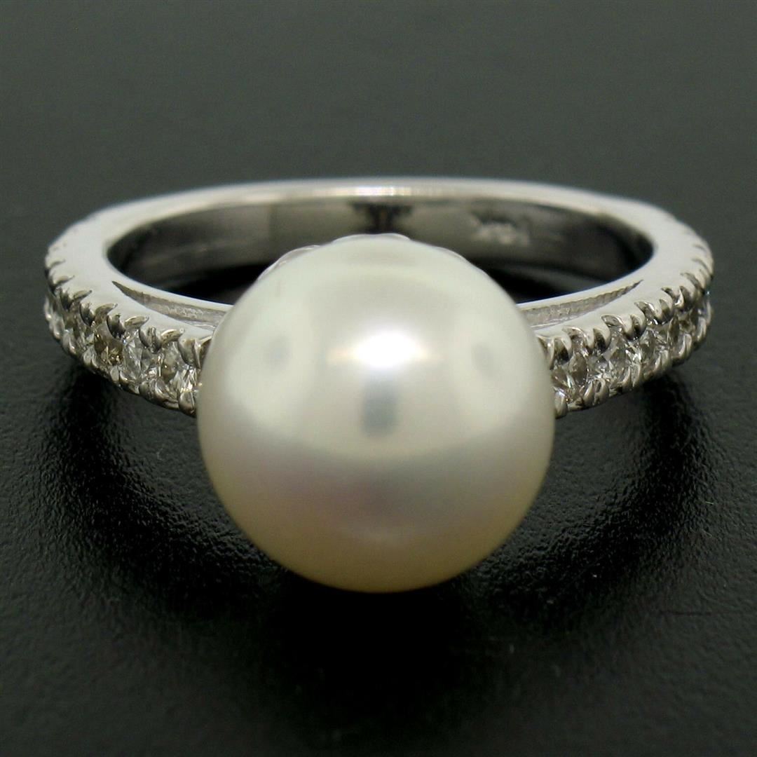 One NEW 14k White Gold 10.6mm Akoya Pearl Ring w/ 0.54ctw F VS Round Diamond Accents. Item Details: Material: 14k Solid White Gold, Weight: 5.3 Grams, Stone(s): (1) Genuine Akoya Pearl - Round Shape - Ivory Color - Beautiful Luster - Very High Quality - 10.64mm, (18) Natural Genuine Diamonds - Round Brilliant Cut - Prong Set - F/G Color - VS1/VS2 Clarity - 0.54ctw (approx.), Total Carat Weight: 0.54 (approx.), Ring Size: 7.0, Ring Width: 10.64mm, Ring Height: 12.2mm rise off the finger. Condition: Brand New w/o tags. Very high quality!