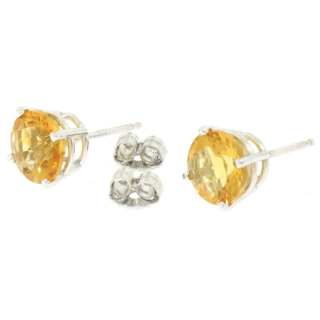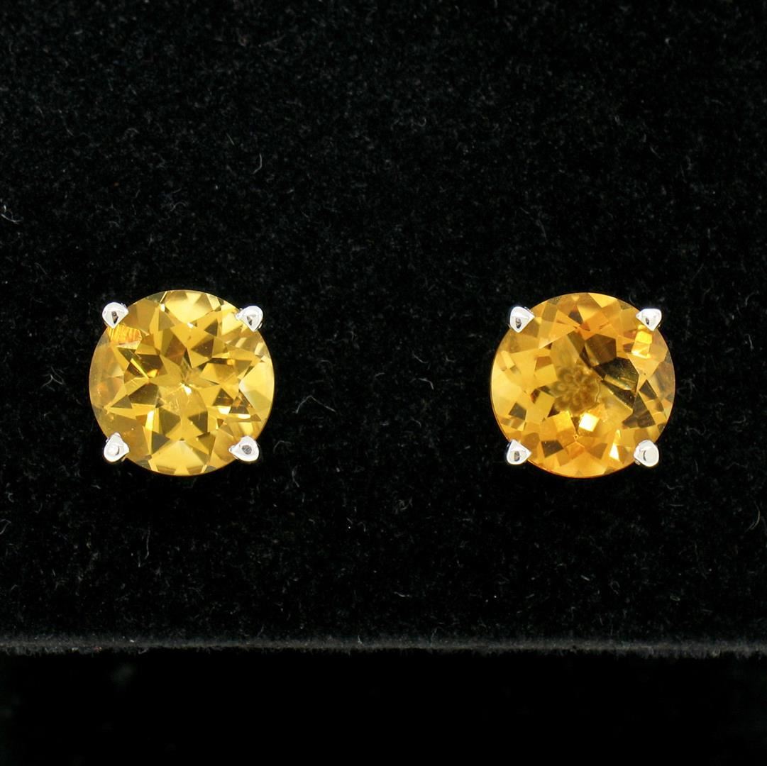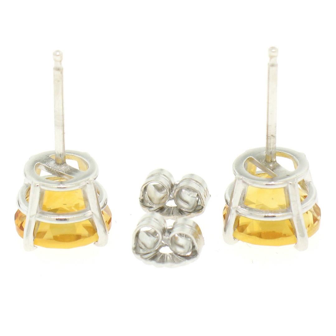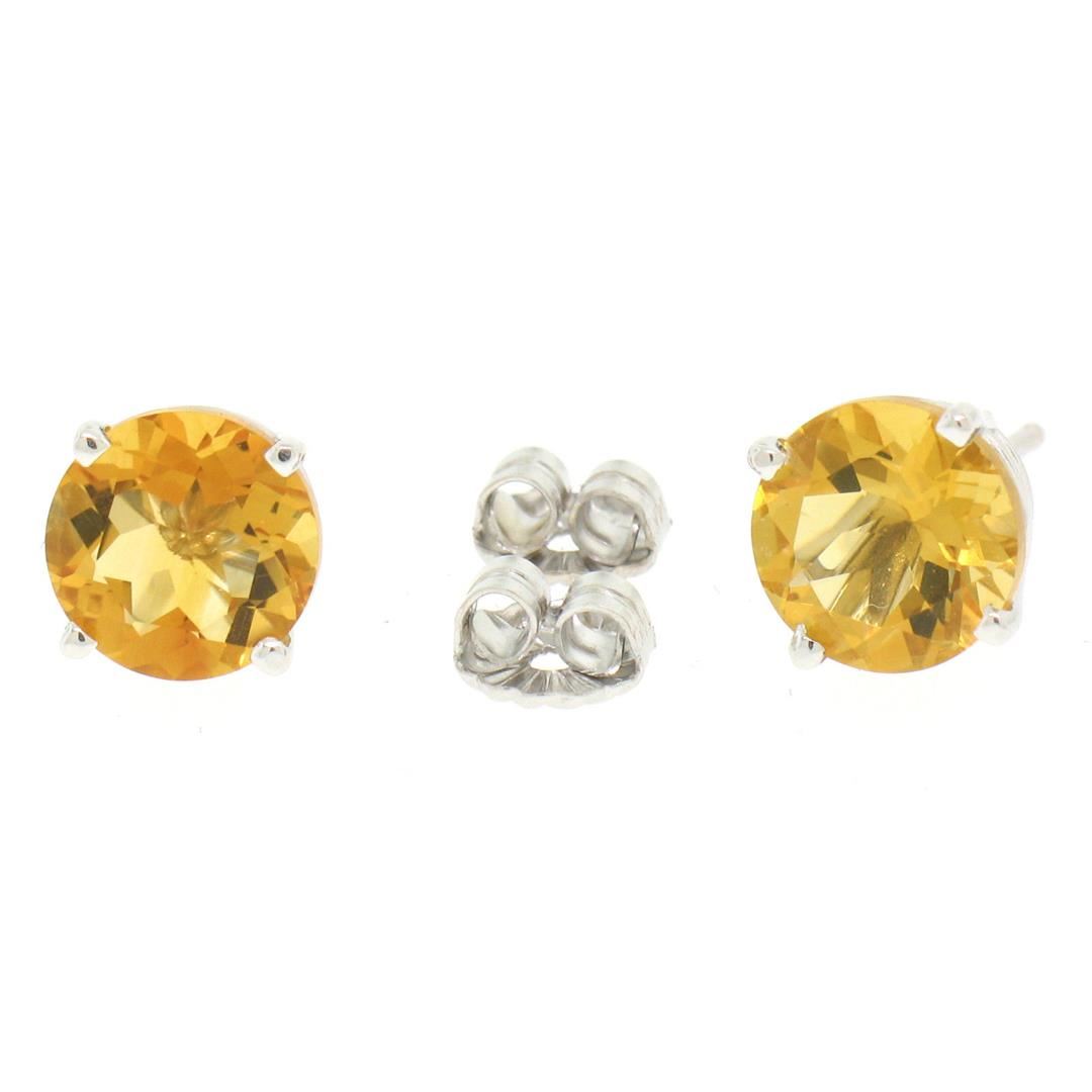 This brand new pair of classic round stud earrings is crafted in solid 14k white gold and features a pair of 7.10mm round citrine stones with a rich and vibrant yellow-orange color. The two stones weigh approximately 2.16 carats total and are prong set in a basket setting. A beautiful, custom made pair of simple and classically styled stud earrings. Enjoy!