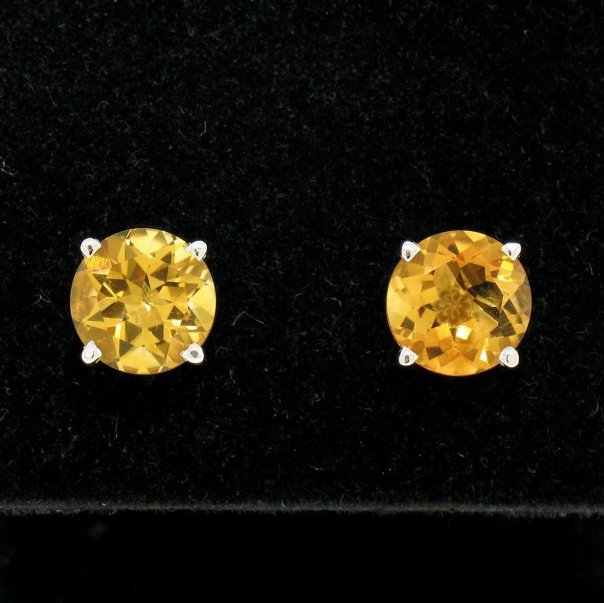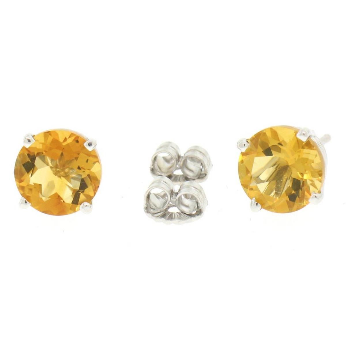 One NEW 14k White Gold 2.16ctw Round Citrine Classic Simple 7.10mm Stud Earrings. Item Details: Material: 14k Solid White Gold, Weight: 1.5 Grams, Stone(s): (2) Natural Genuine Citrine - Round Cut - Prong Set - Rich and Vibrant Yellow-Orange Color - 7.10mm Diameter (approx.), Total Carat Weight: 2.16 (approx.), Backing: Post Back w/ Butterfly Closure, Diameter: 7.10mm, Thickness: 5.58mm projection off the ear, Condition: New w/o Tag