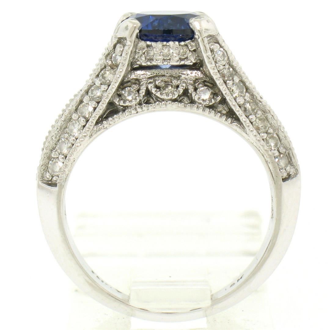 One 14k White Gold 2.50ctw FINE Tanzanite Solitaire Round Diamond Open Milgrain Ring. Item Details: Material: 14K Solid White Gold, Weight: 5.6 Grams, Stone(s): (1) Natural Genuine Tanzanite - Round Brilliant Cut - Prong Set - Very Rich and Vivid Blue Color - 1.60ct (approx.), (50) Natural Genuine Diamonds - Round Brilliant Cut - Channel & Pavé Set - G/H Color - SI1 Clarity - 0.90ctw (approx.), Total Carat Weight: 2.50ctw (approx.), Ring Size: 4.5, Ring Width: 7.03mm, Ring Height: 7.69mm rise off the finger. Condition: Like New!