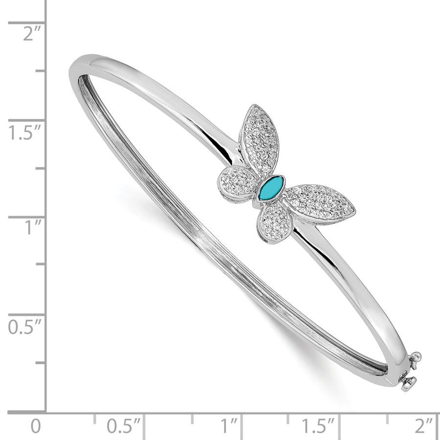 14k White Gold .262ct Diamond Turquoise Butterfly Bangle - 7 in.