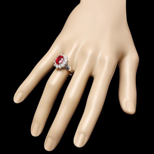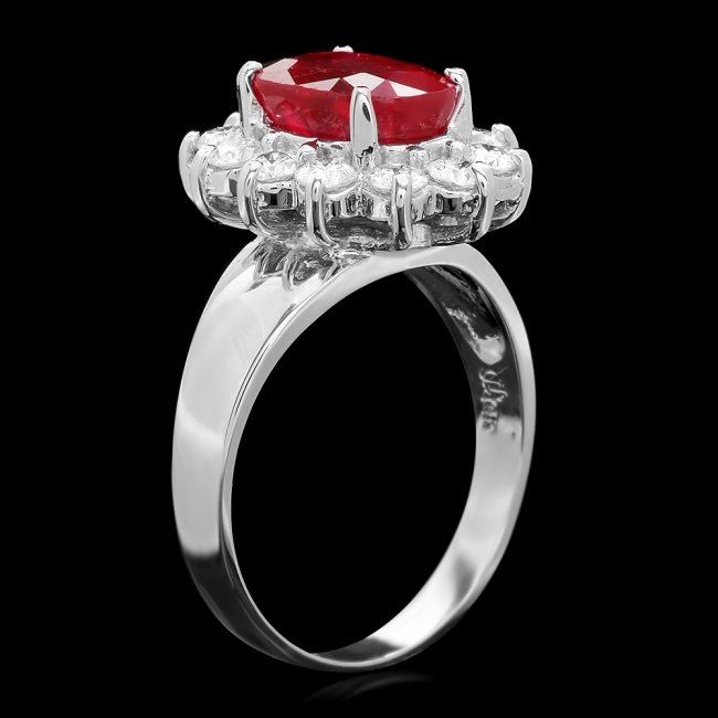 Retail: $6,300.00 ****** 14k White Gold 3.40ct Ruby 1.00ct Diamond Ring ****** Metal: 14k Solid White Gold / Size: 7 / Total Item Weight: 5.5 grams / Country Made: United States / / Main Stone: Ruby / Color: Red / Carat Total Weight: 3.40 / Treatment: Filling / Clarity: Type 2 / Cut: Very Good / / Secondary Stone: Diamond / Carat Total Weight: 1.00 / Treatment: None / Color Grade: H - I / Clarity: SI1 - SI2 / Cut: Very Good /