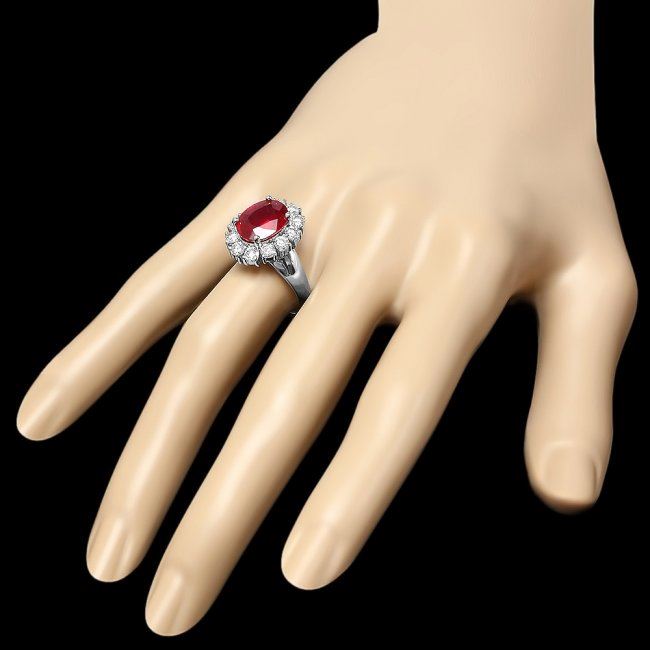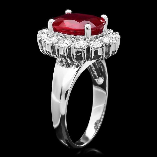 Retail: $7,900.00 ****** 14k White Gold 4.30ct Ruby 1.40ct Diamond Ring ****** Metal: 14k Solid White Gold / Size: 7 / Total Item Weight: 6.6 grams / Country Made: United States / / Main Stone: Ruby / Color: Red / Carat Total Weight: 4.30 / Treatment: Filling / Clarity: Type 2 / Cut: Very Good / / Secondary Stone: Diamond / Carat Total Weight: 1.40 / Treatment: None / Color Grade: H - I / Clarity: SI1 - SI2 / Cut: Very Good /