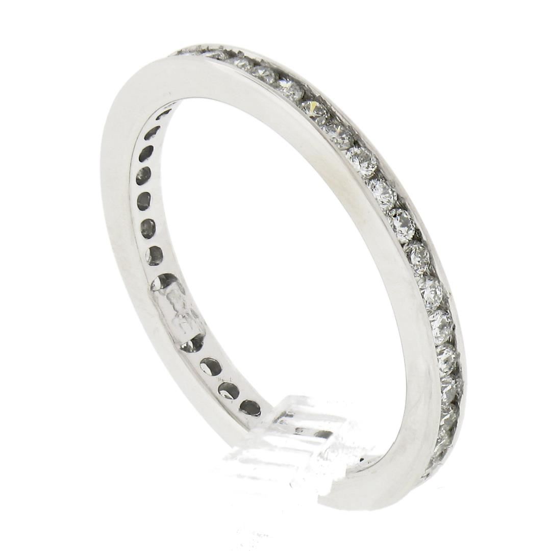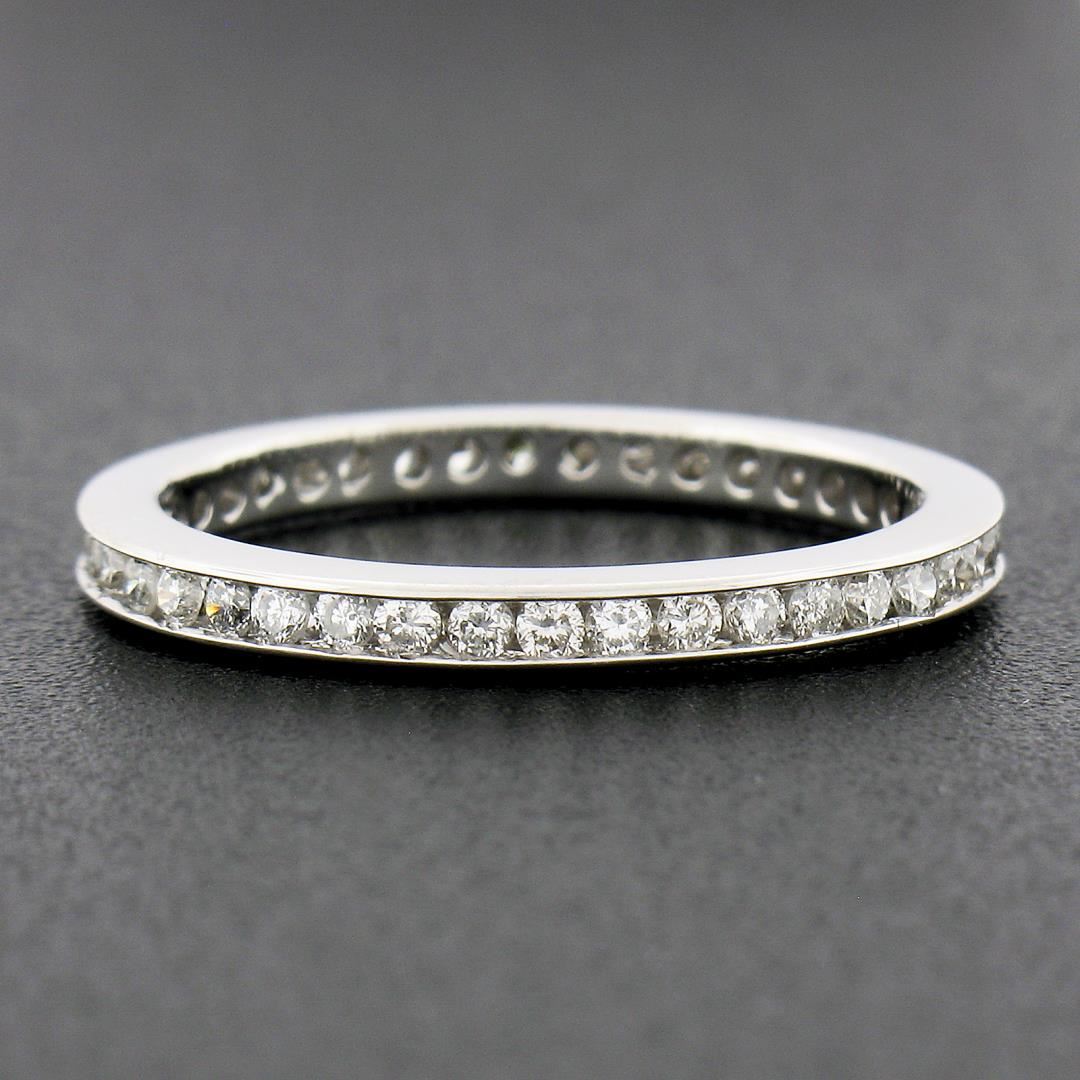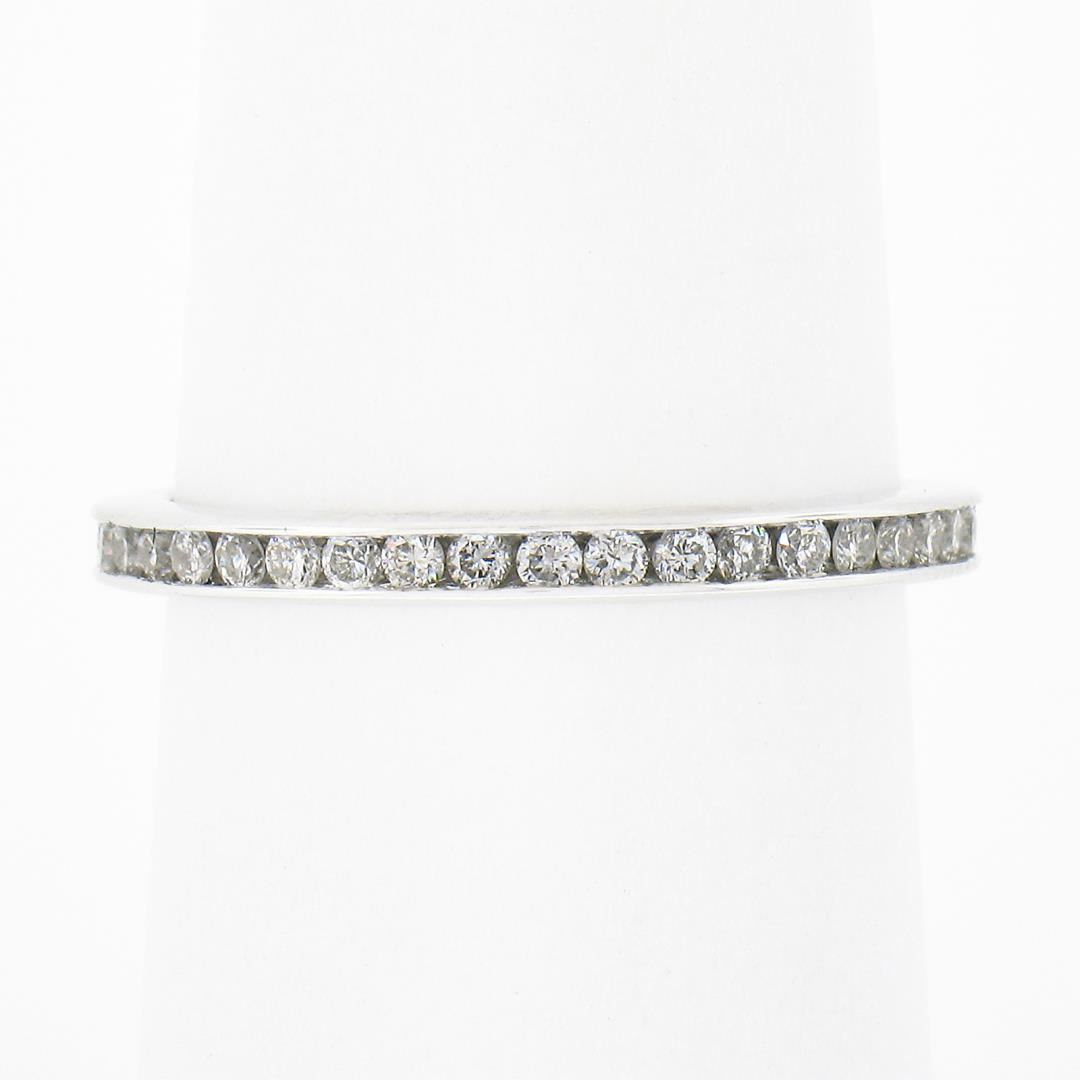 a solid 14k white gold eternity band ring, featuring 41 round cut natural diamonds (G/H - SI2-I1 ; 0.60ctw)The ring is size 6.5, weighs a total of 2.03 grams, and measures 2.2mm wide.