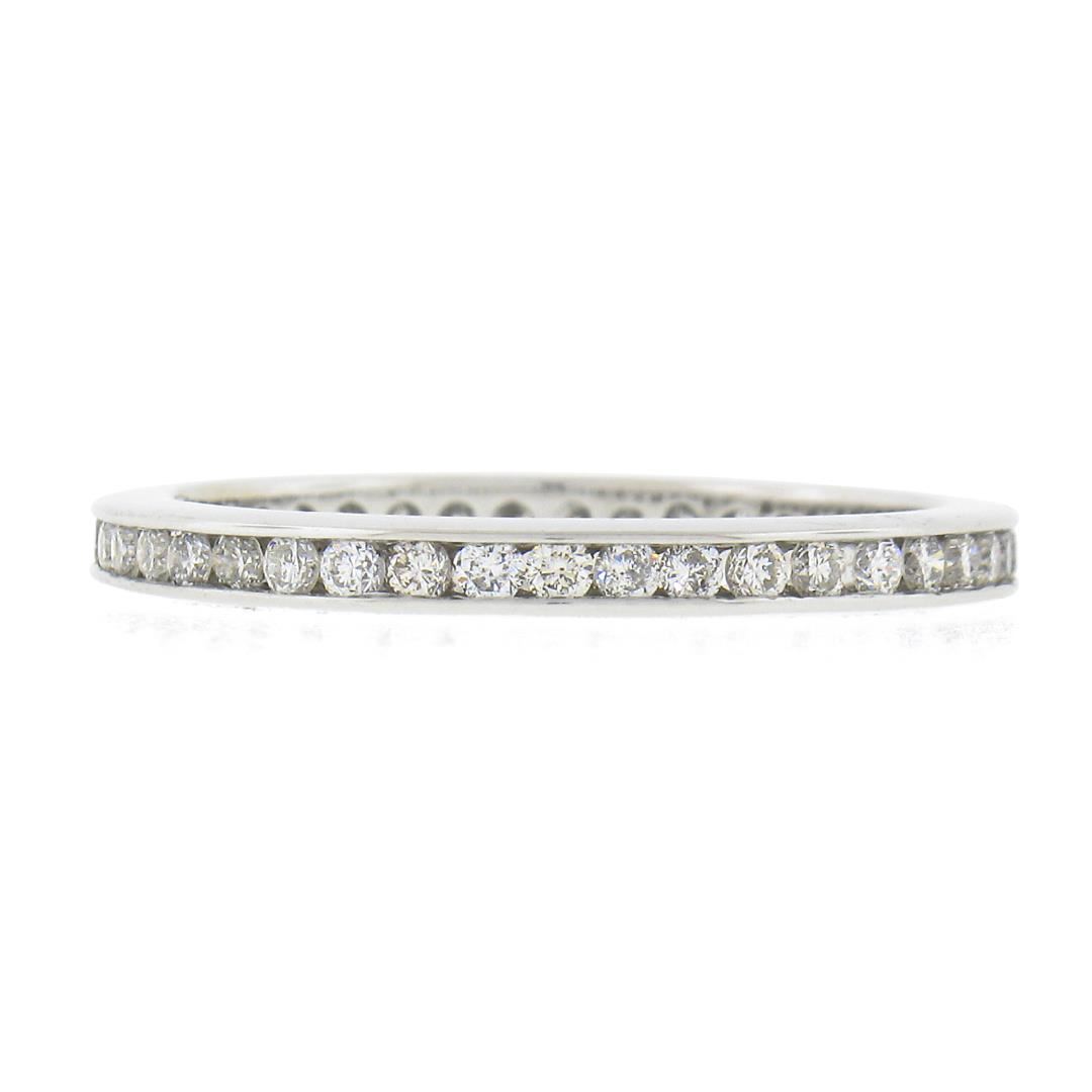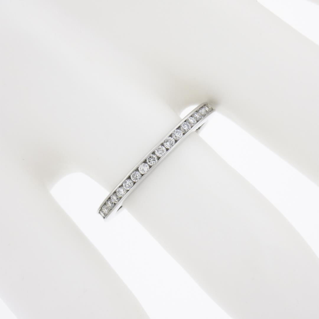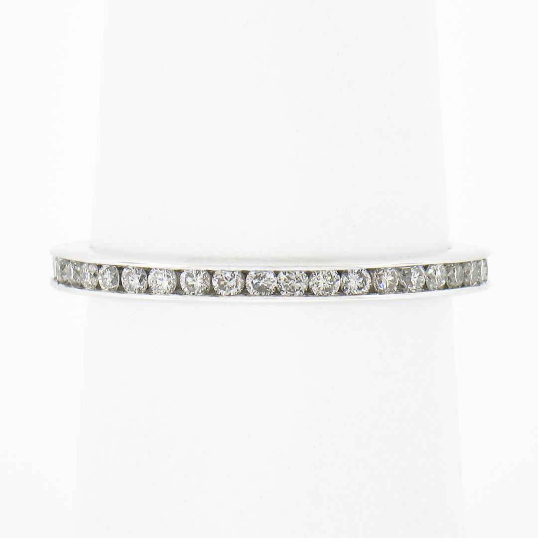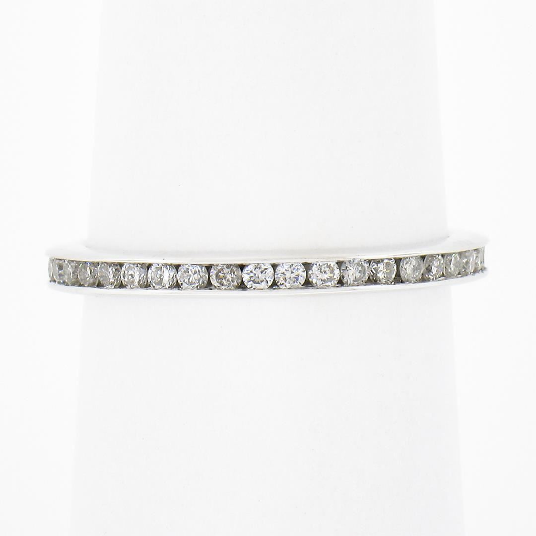 a solid 14k white gold eternity band ring, featuring 41 round cut natural diamonds (G/H - SI2-I1 ; 0.60ctw)The ring is size 6.5, weighs a total of 2.03 grams, and measures 2.2mm wide.