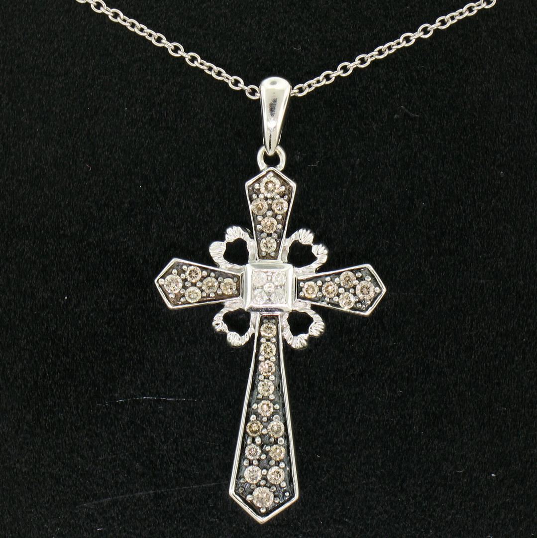 14k White Gold .70 ctw Fancy Brown Diamonds on Black Cross Pendant w/ 18" Chain