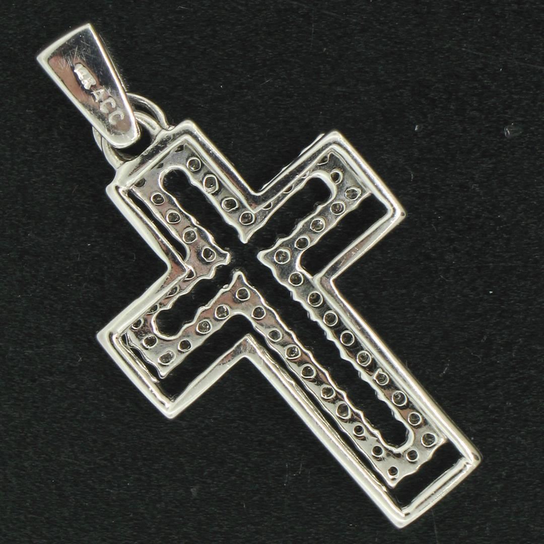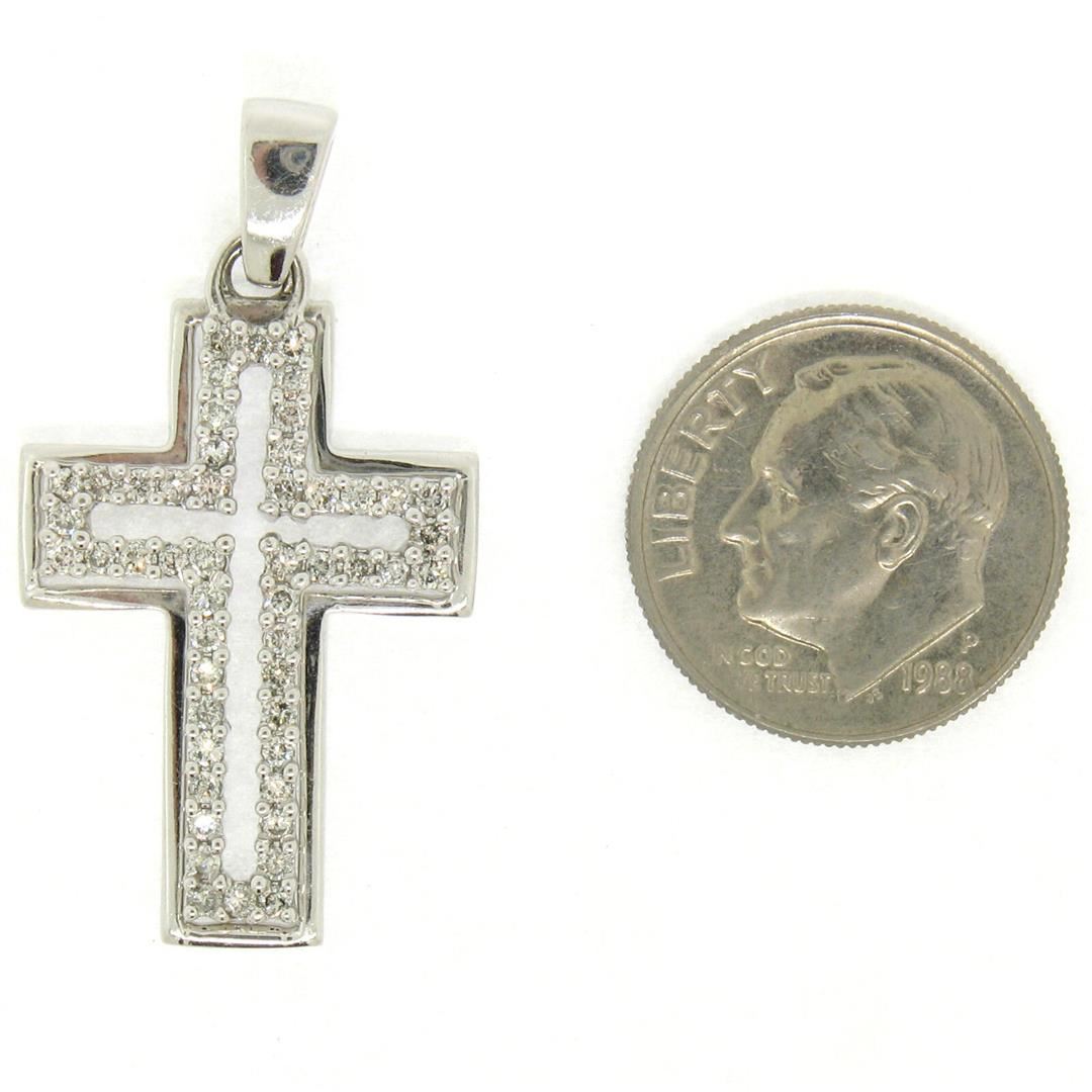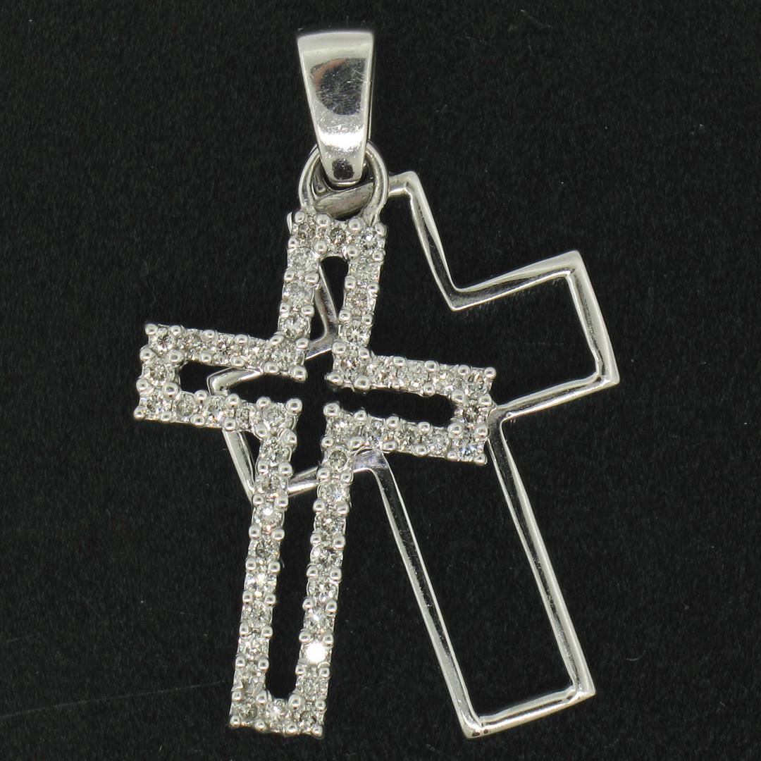 14k White Gold.75 ctw Round Brilliant Diamond Open Double Floating Cross Pendant