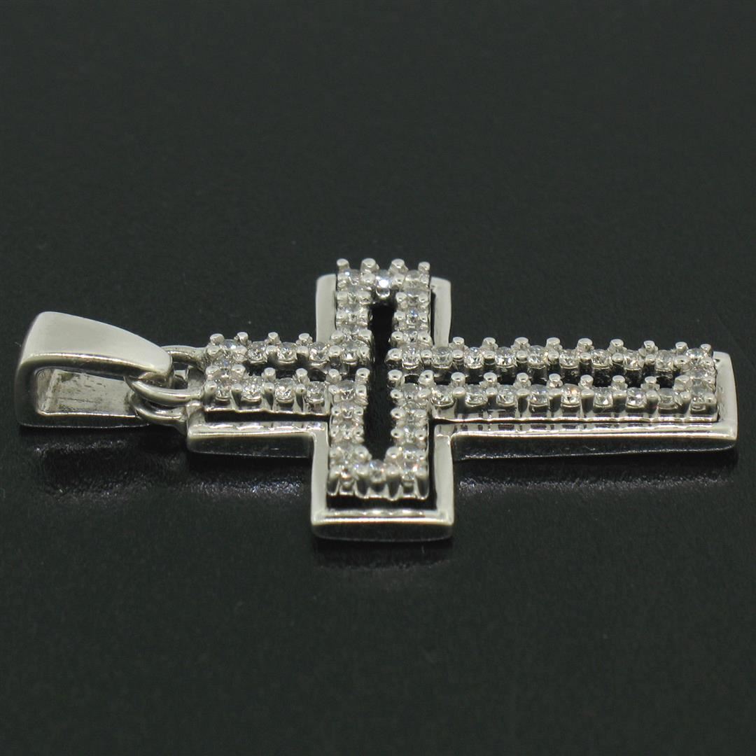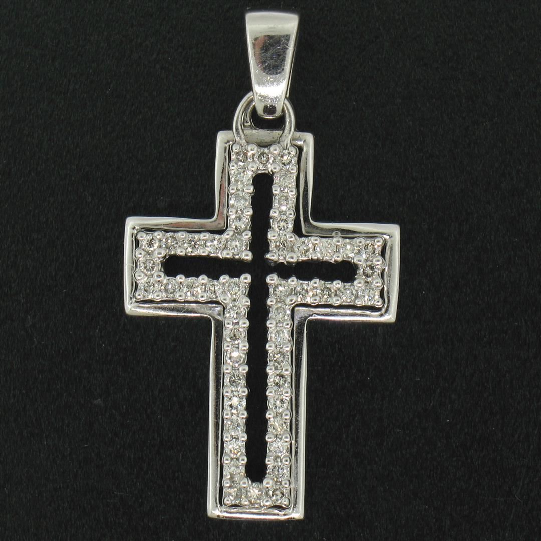 14k White Gold.75 ctw Round Brilliant Diamond Open Double Floating Cross Pendant