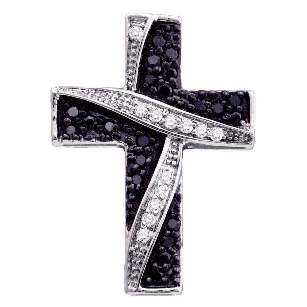14k White Gold Black Color Enhanced Diamond Cross Crucifix Womens Charm Pendant 1/4 Cttw
