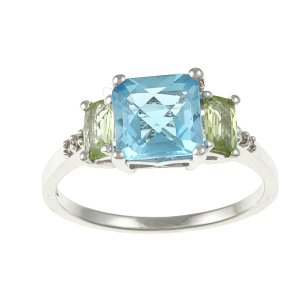 14k White Gold Blue Topaz, Peridot and Diamond Accent Ring Item#: 13673244