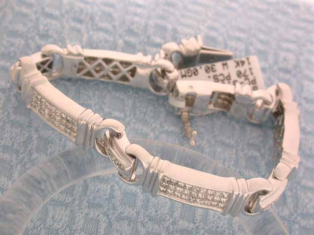 14k White Gold Bracelet with Diamonds. The Diamonds are 3.17 carats, 170 pieces, G color and VS clarity. Its length is 7 inches long and weighs 30.0 grams.