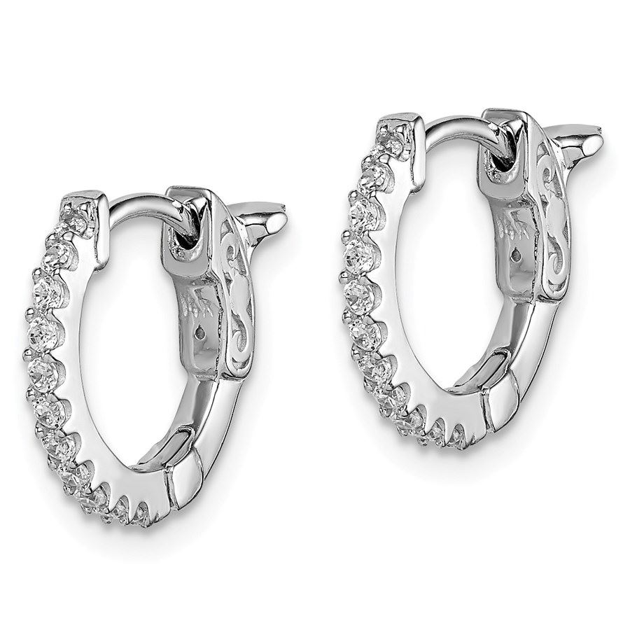 14k White Gold Cubic Zirconia Hinged Hoop Earrings - 50 mm