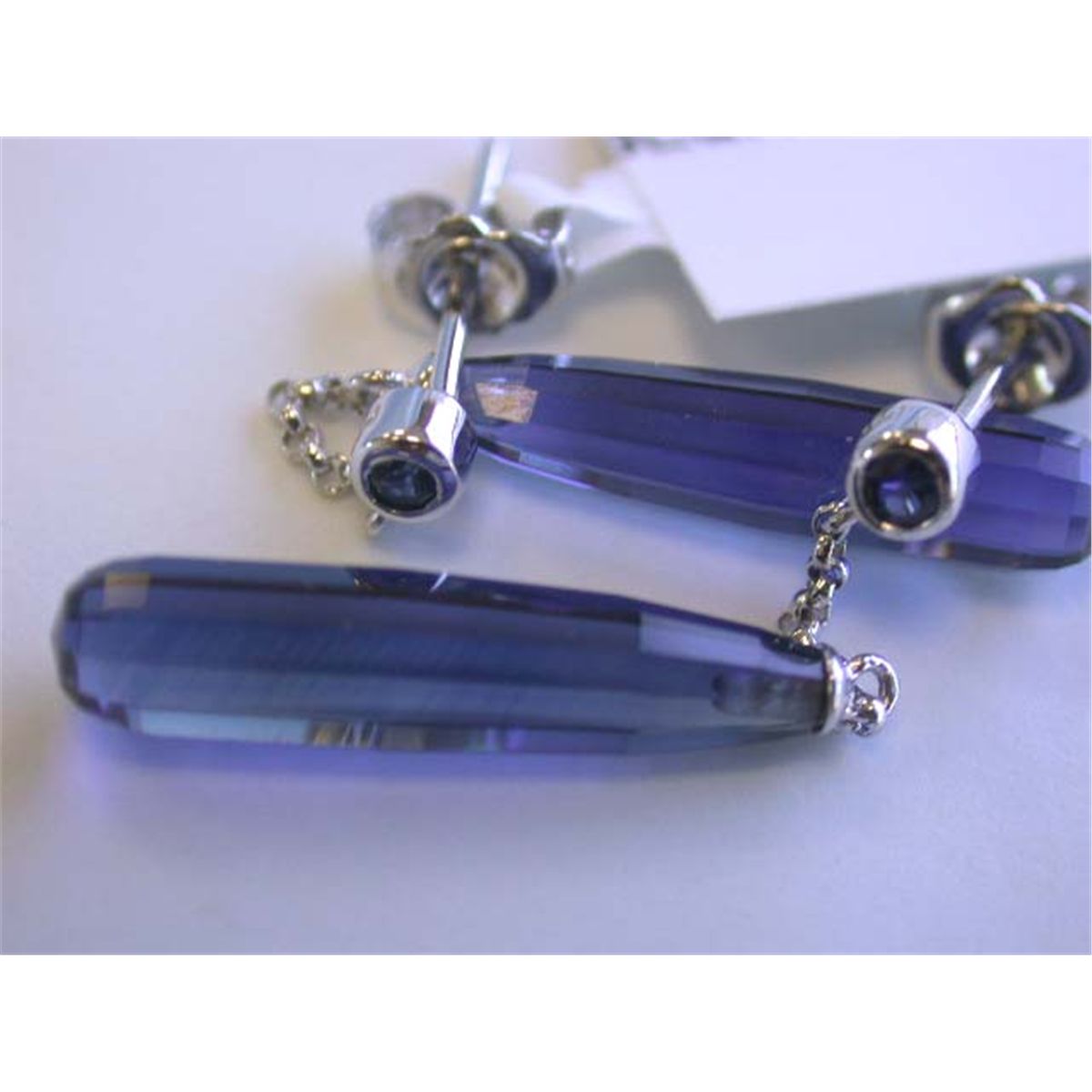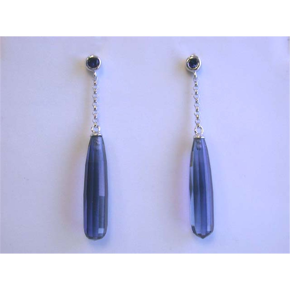 14k White Gold Earrings with Blue Quartz approximately 1.5 inches long and weighs 2.0 grams