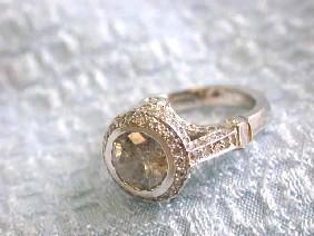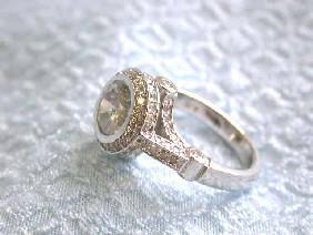 14k White Gold Ring with Center Diamond - 2.07 carats, G color and I2 clarity and Diamond Accents - 0.97 carat, 76 stones, G color and SI clarity. The ring size is 6.75 and weigh is 8.2 grams