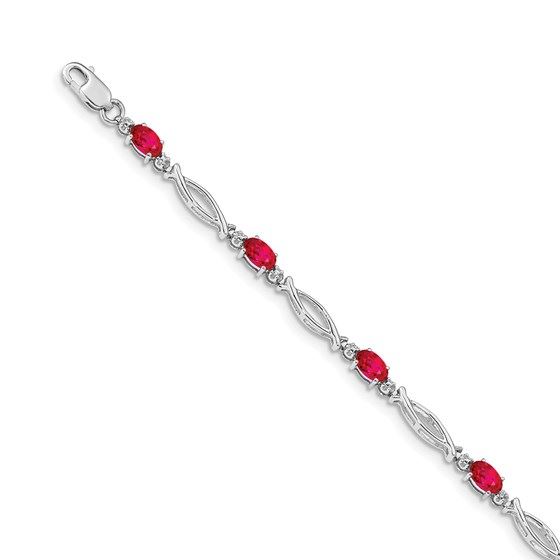 One piece 14k White Gold Diamond and Ruby Fancy Link Bracelet - 7 in.