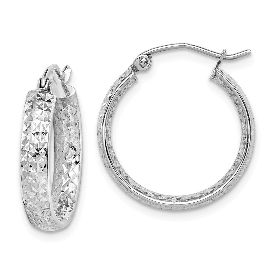 14k White Gold Diamond-cut In/Out Hoop Earrings - 47 mm