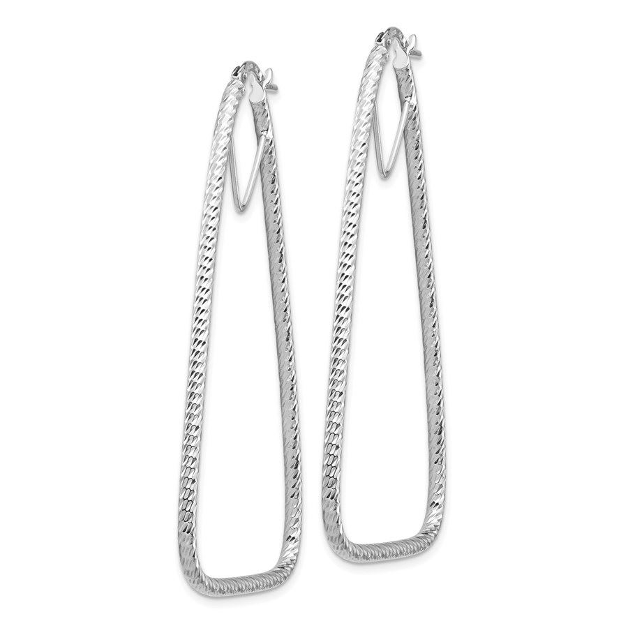 14k White Gold Diamond-cut Triangle Hoop Earrings - 2x35 mm