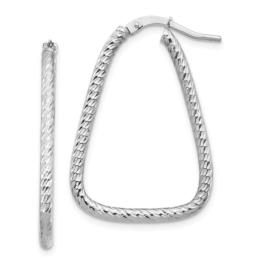 14k White Gold Diamond-cut Twisted Triangle Hoop Earrings - 31 mm