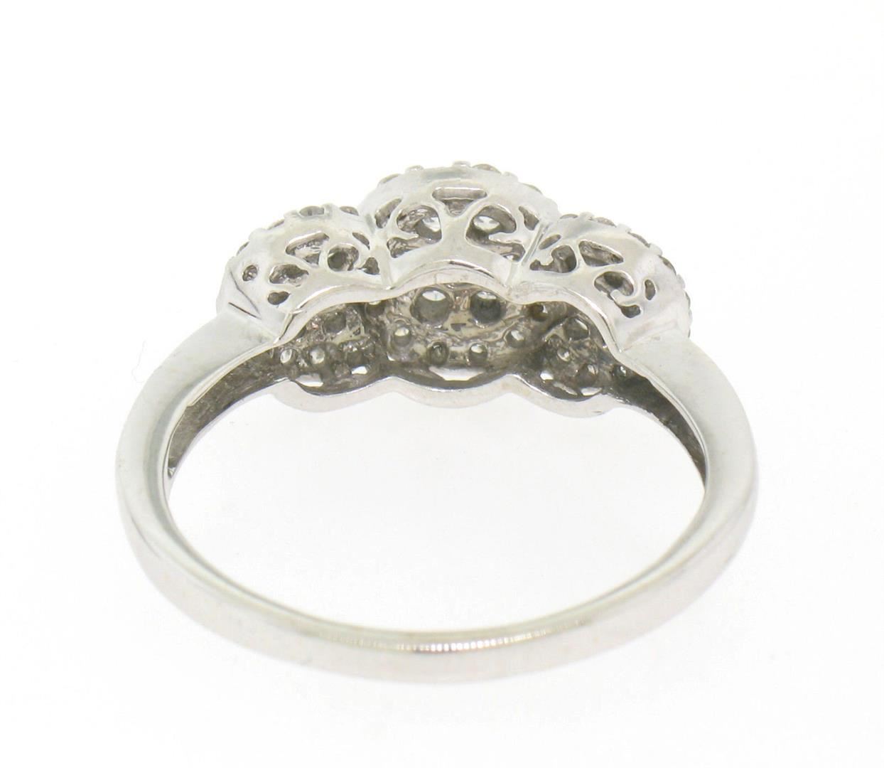 An estate solid 14k white gold band ring, with 52 round brilliant cut natural diamonds (F - VS2; 1.25ctw). The ring is size 9.0, weighs a total of 4.10 grams, and measures 8.72mm wide.