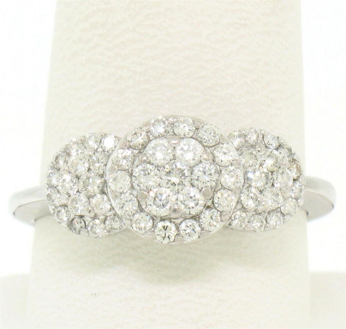 An estate solid 14k white gold band ring, with 52 round brilliant cut natural diamonds (F - VS2; 1.25ctw). The ring is size 9.0, weighs a total of 4.10 grams, and measures 8.72mm wide.