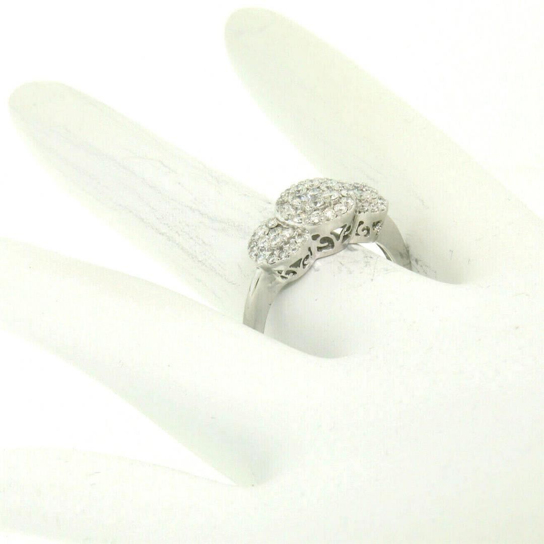 An estate solid 14k white gold band ring, with 52 round brilliant cut natural diamonds (F - VS2; 1.25ctw). The ring is size 9.0, weighs a total of 4.10 grams, and measures 8.72mm wide.